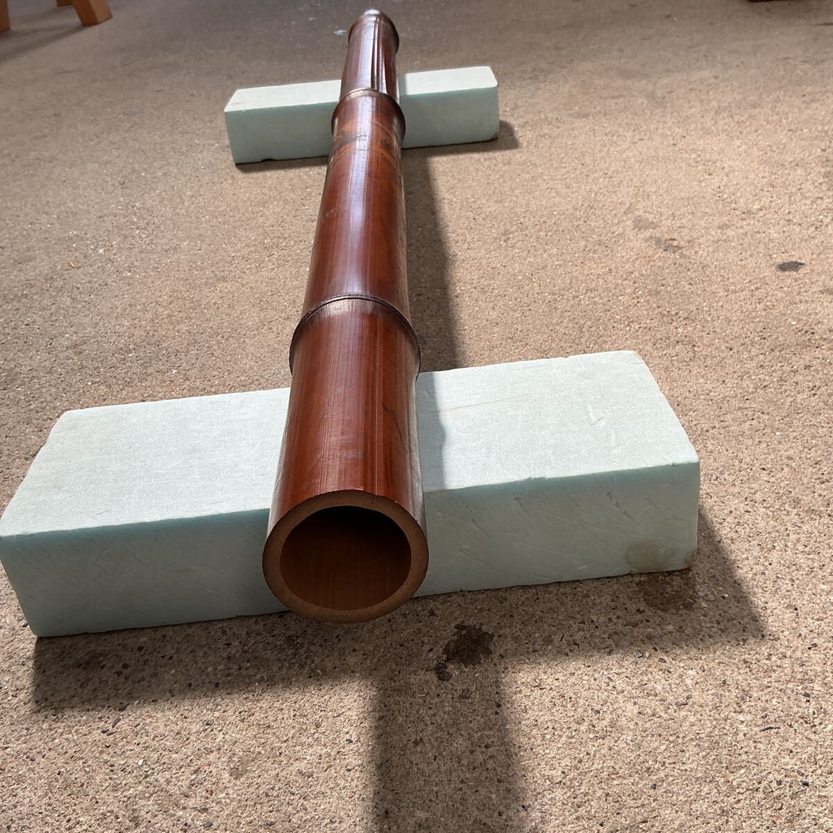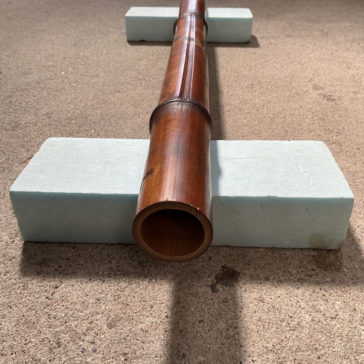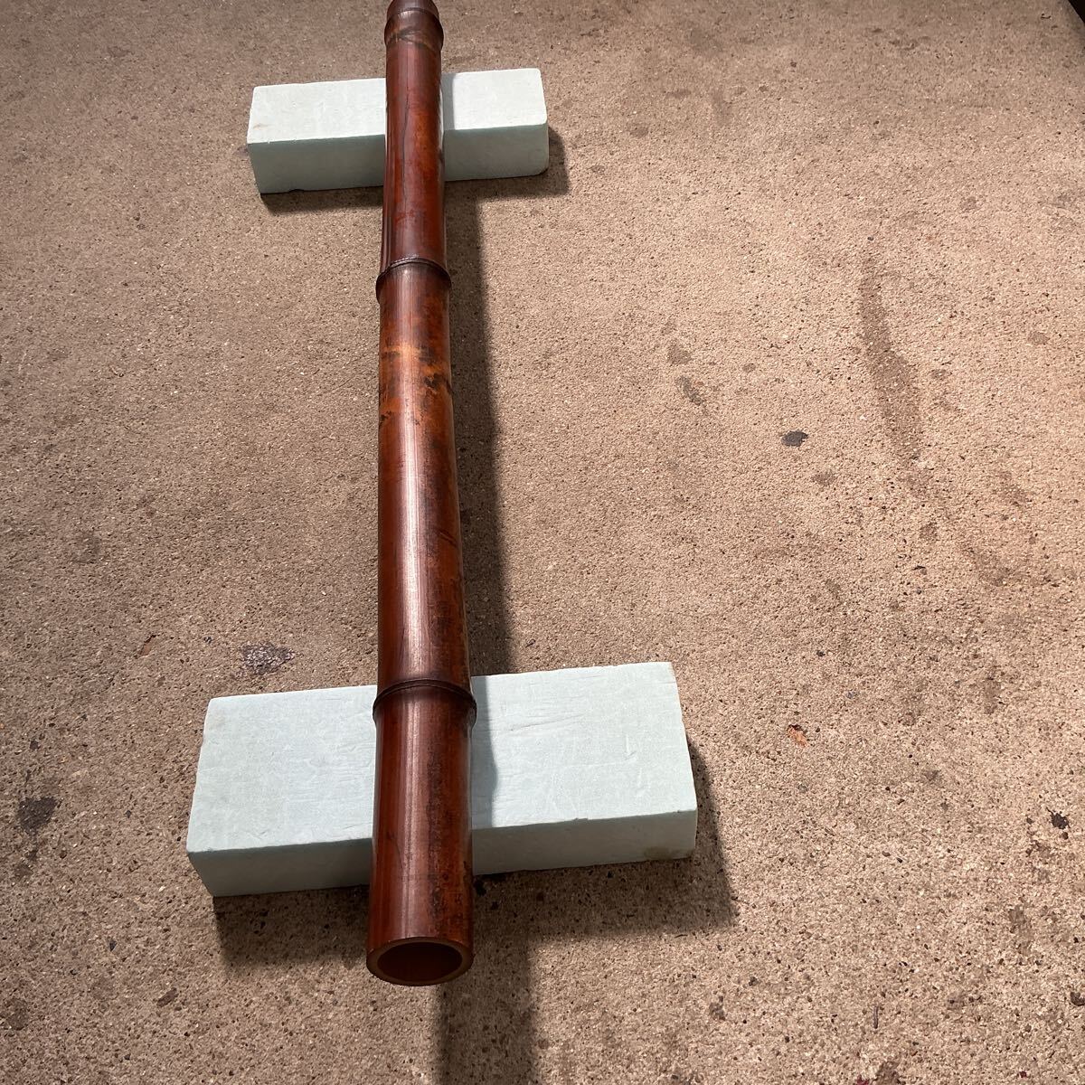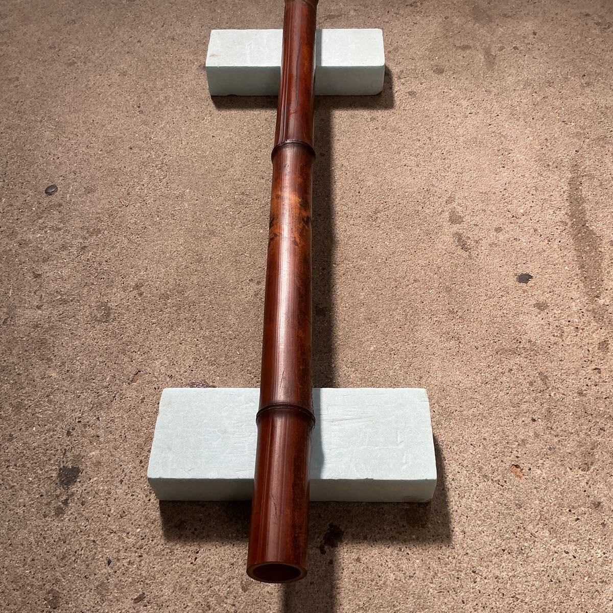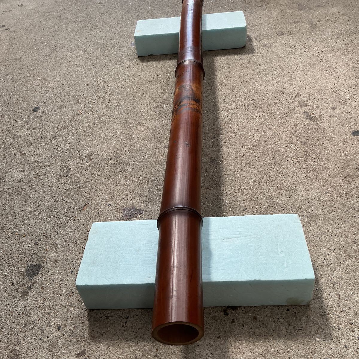経年劣化がある煤竹です。大きさ長さ88cm×元径46mm×末径46mm、肉厚元で4.5mm末で4mmぐらいです。