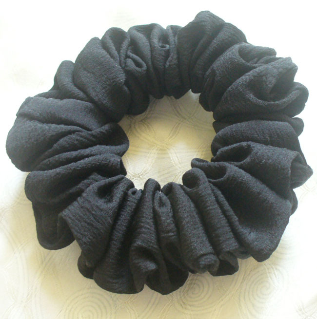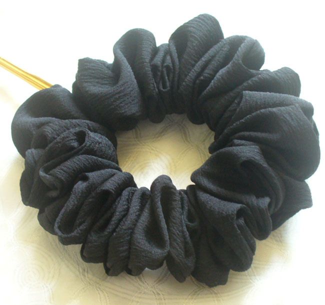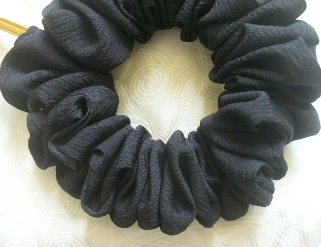 ゴム交換可能 黒 細幅 フリル フリル シュシュ シルク 上質 着物リメイク 和柄 手縫い ハンドメイド リメイク 着物 和物