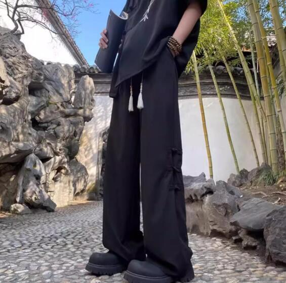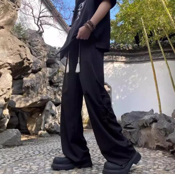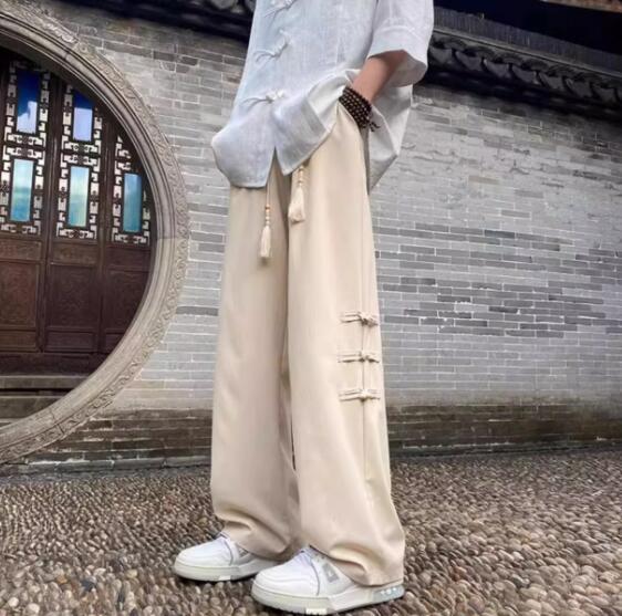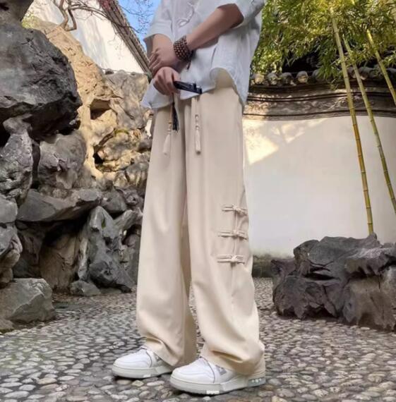新入荷メンズ ワイドパンツ カジュアルパンツ クール 冷感 涼しい 中華風 大きいサイズ ウエストゴム 長ズボン 夏 無地(3色M-5XL)