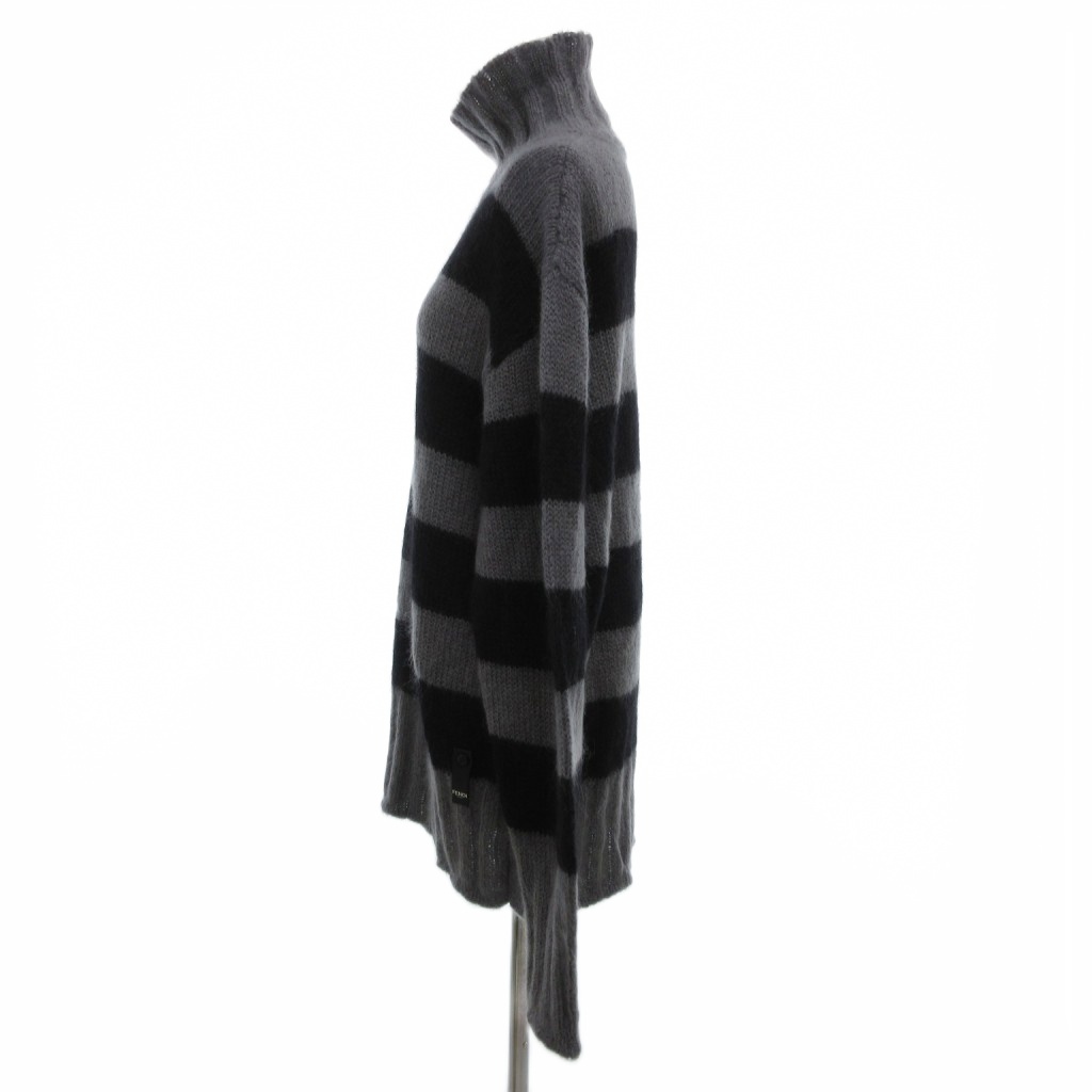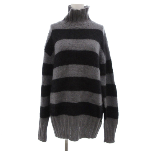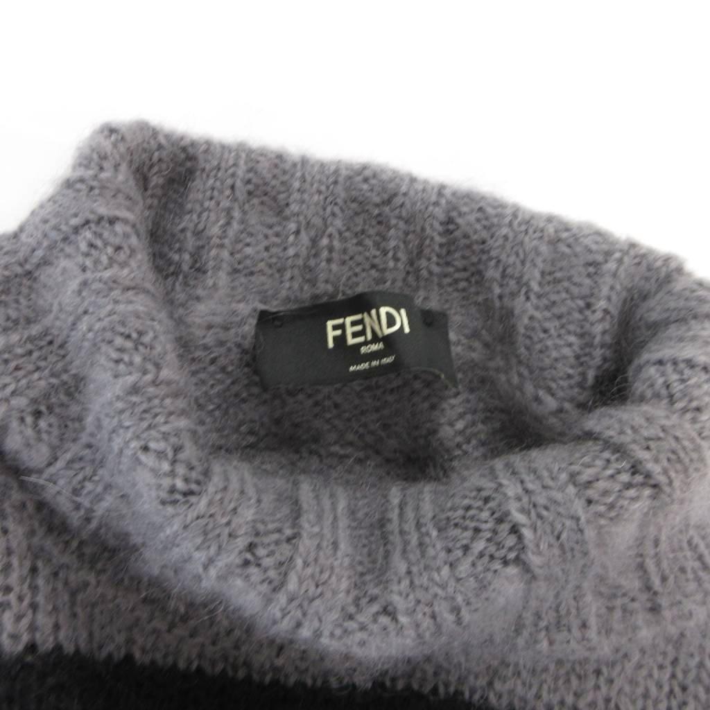 フェンディ FENDI 21AW タートルネック ニット セーター ボーダー モヘア ウール 48 グレー 黒 ブラック /JS ■GY19 レディース