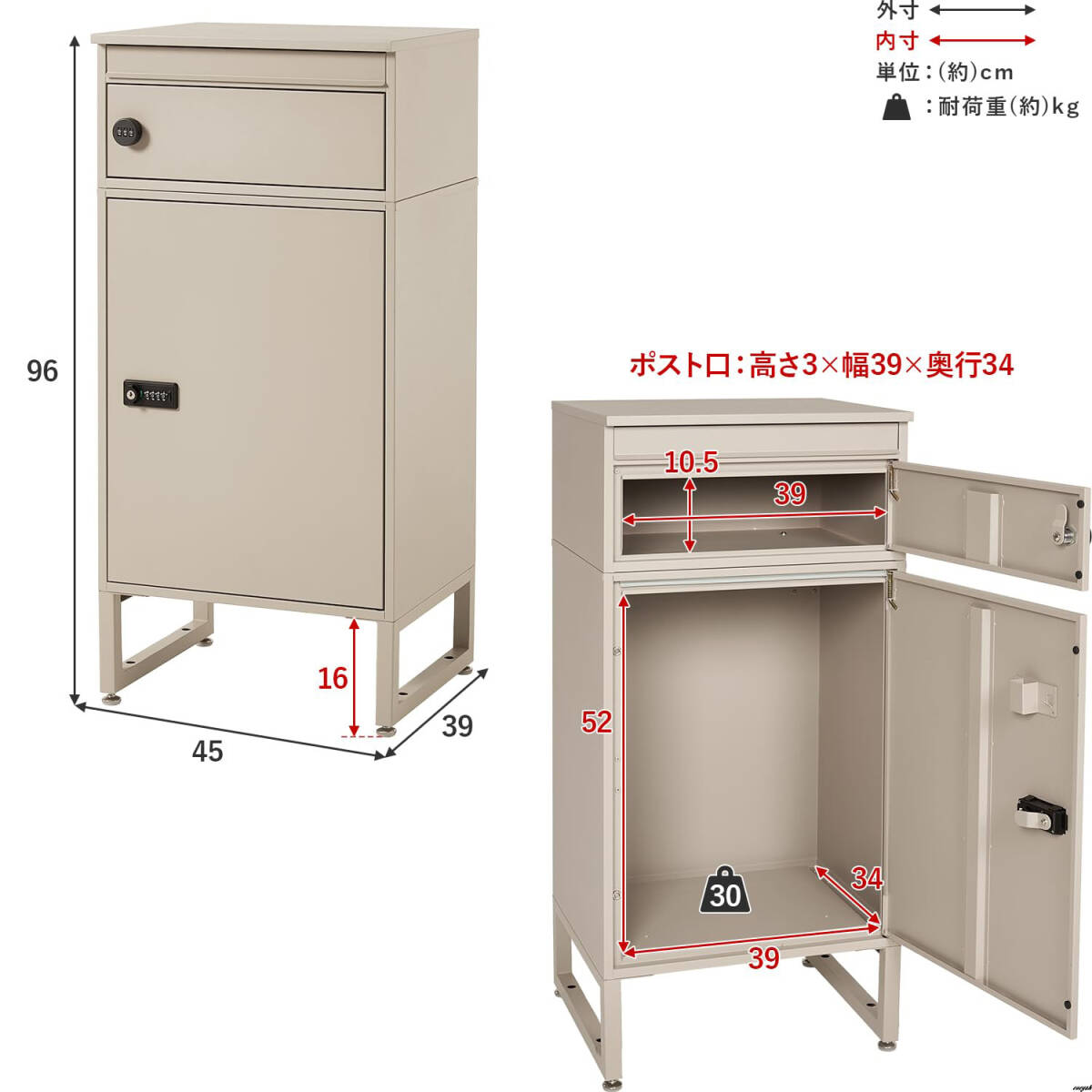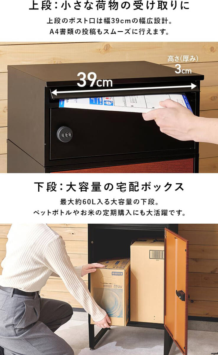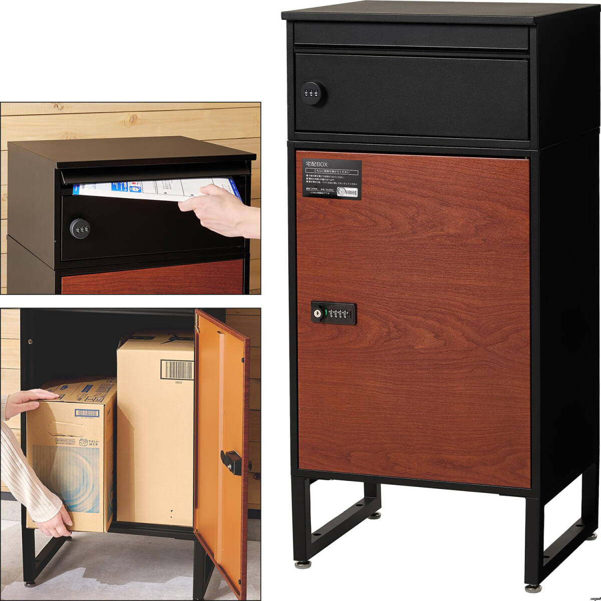 【複数荷物の同時受取が可能な大容量】 宅配ボックス 置き配 盗難防止 ポスト一体型 屋外 ダイヤル錠 戸建て 耐水性 ブラックブラウン