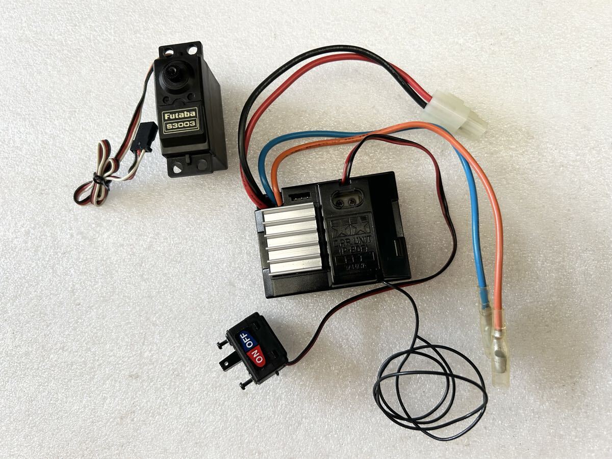 タミヤの受信機一体型アンプのCPRユニットP-80F、フタバS3003サーボのセット。出品内容は画像1枚目の本体が全て。以前に未使用に近いものを入手し盆栽マシンに付けていましたので主観では美品かと思います。製品仕様などにつきましては質問ではなく各自サイト等にてお調べ下さい。その他に付属品は一切有りませんので余計な質問はご遠慮下さい。出品前に通電確認済みですが古い商品につき以後の動作保証やサポートも一切御座いませんのでご理解の上で参加願います。画像優先にてご確認の上でノークレーム、ノーリターンでお願いします。神経質な方はご遠慮願います。