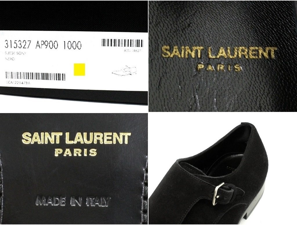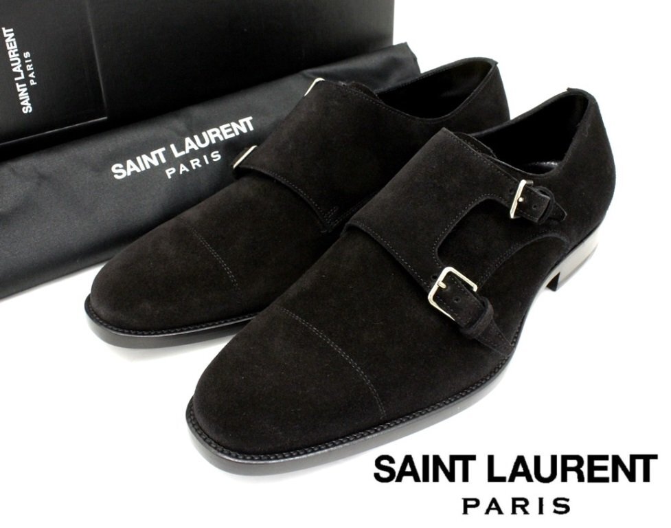 20万新品◆43=28cm◆【サンローラン】 スエードダブルモンクストラップシューズ黒