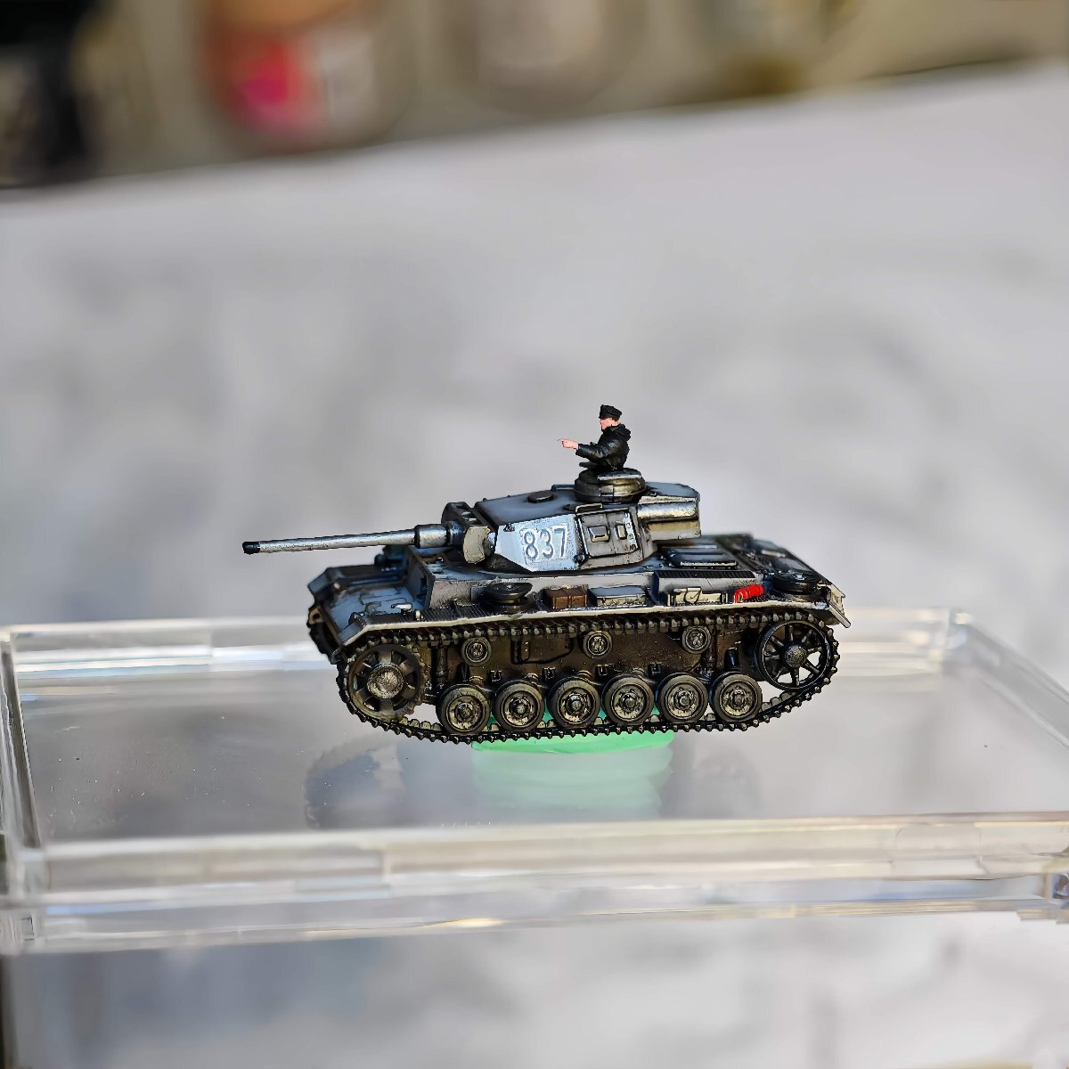 超ミニ ドイツ III号戦車L型 1/144 超精密塗装済み完成品 砲塔回転可能 き ミリタリーモデル