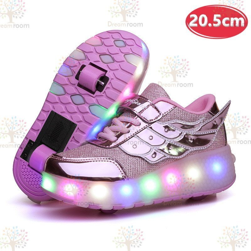 光る☆LED ライトアップスニーカー&ローラーシューズ 一体型 【K-374メタルピンク 20.5cm】夜間 スケート靴 反射材 ジョギング 自転車