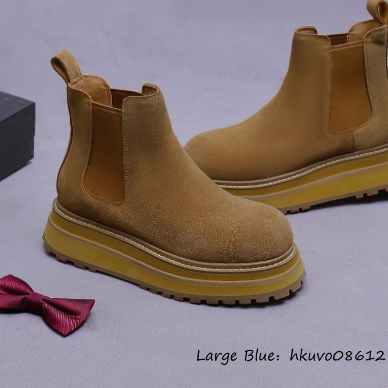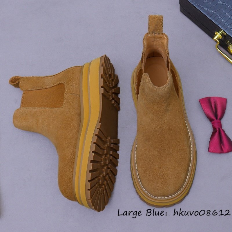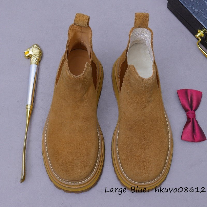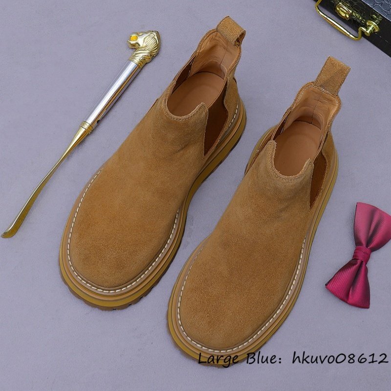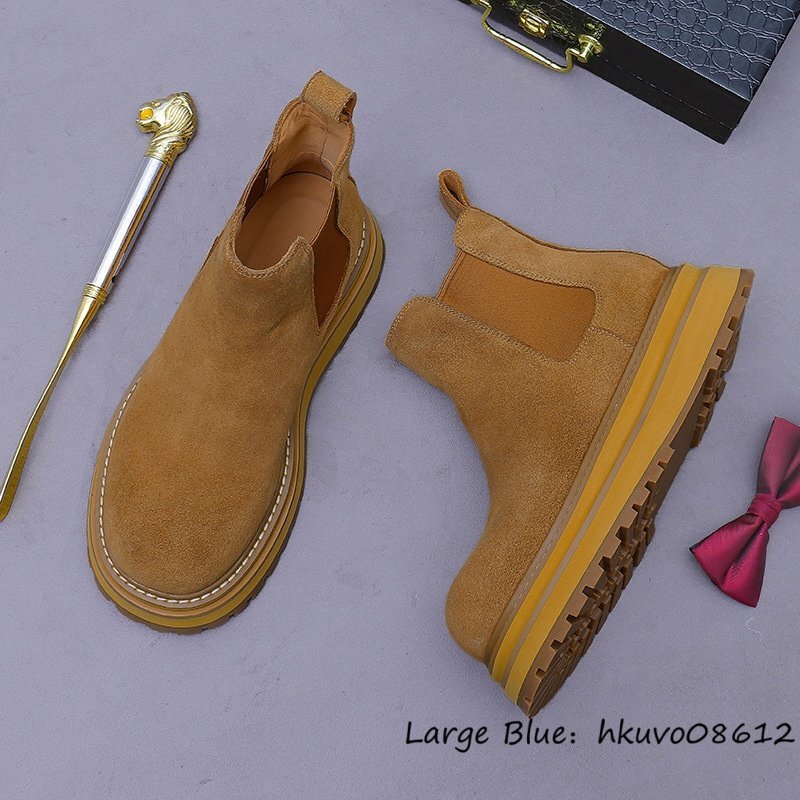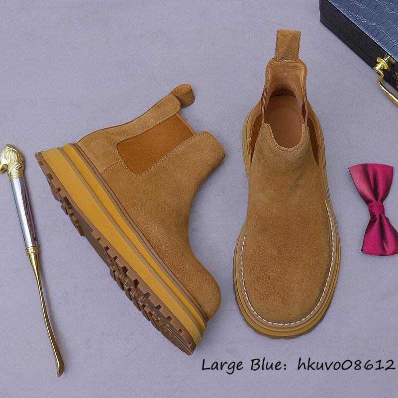 最高級*新品 レザーブーツ メンズ スエード革 ショートブーツ マーティンブーツ 牛革 職人手作り ハイカット 厚底 超軽量 ブラウン 24.5cm