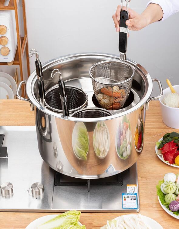 人気品 業務用 そば鍋セット ステンレス製 ザル付き 錆びない 耐久性 多機能 カレー おでん しゃぶしゃぶ 店舗用 飲食店 麺料理 調理器具