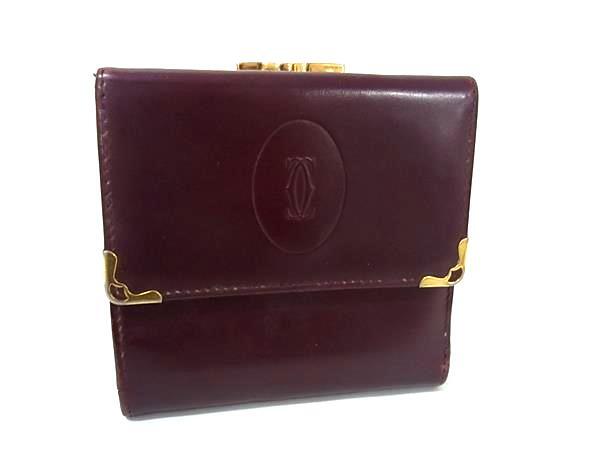 Cartier カルティエ マストライン レザー がま口 二つ折り 財布 ウォレット 札入れ 小銭入れ カード入れ レディース ボルドー系 DK6260