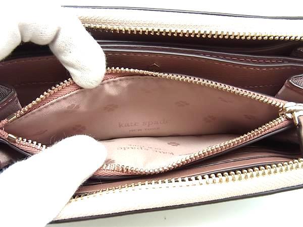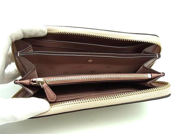 ■美品■ kate spade ケイトスペード PWR00281 レザー ラウンドファスナー 長財布 ウォレット グレージュ系×ブラック系 DJ5104