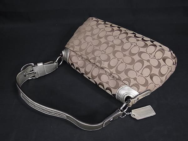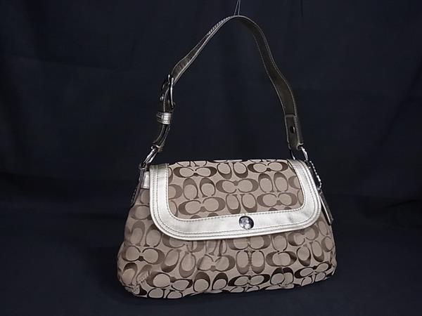 1円 ■美品■ COACH コーチ F13739 シグネチャー キャンバス×レザー ワンショルダーバッグ 肩掛けかばん レディース ベージュ系 FM9905