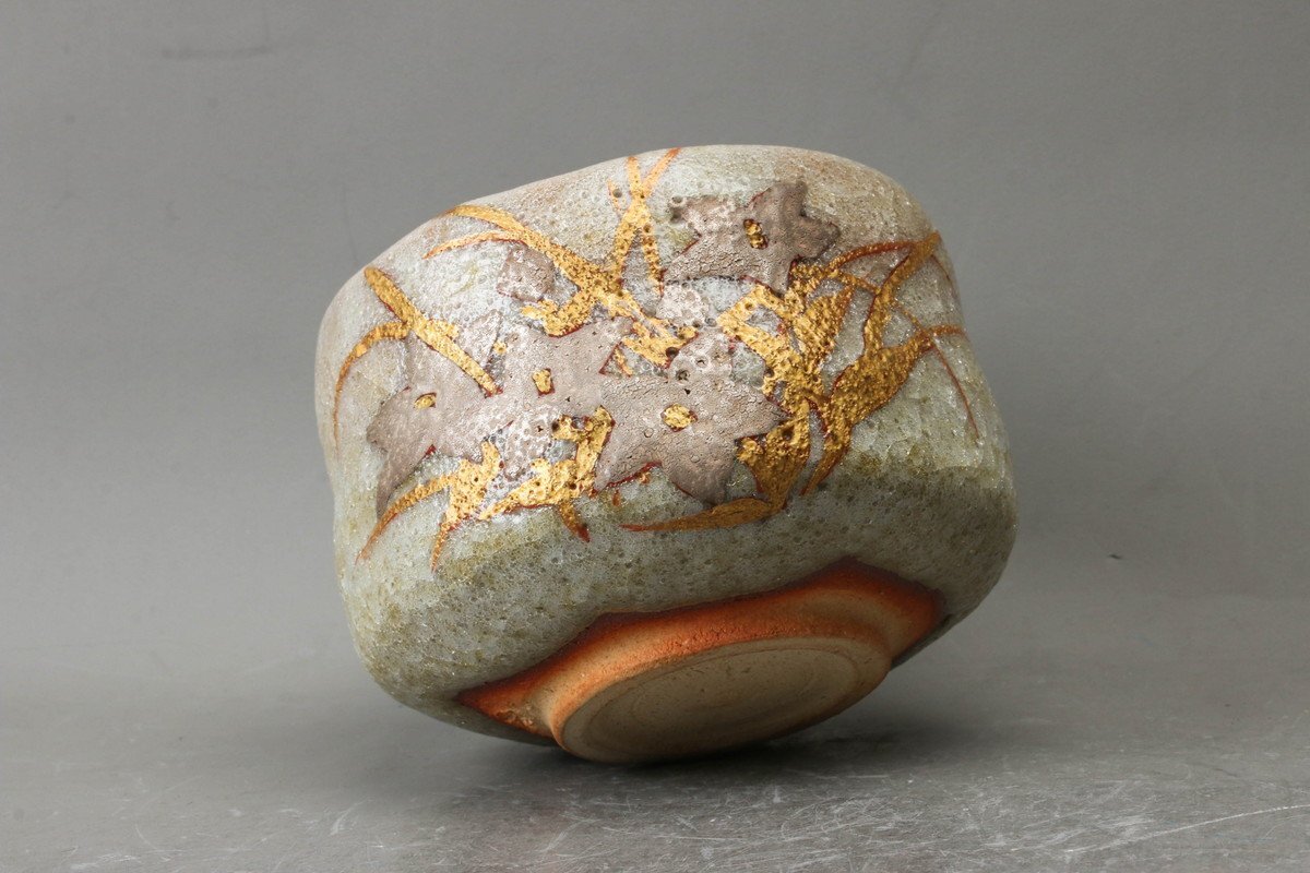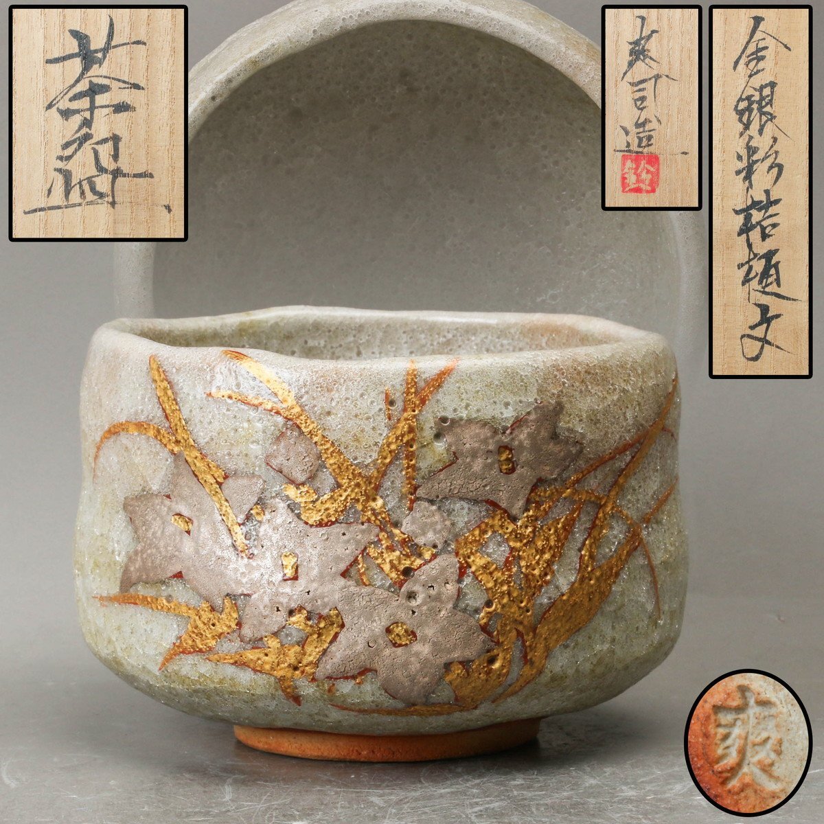 【SAG】鈴木爽司 金銀彩桔梗文茶碗 共箱 栞 茶道具 本物保証
