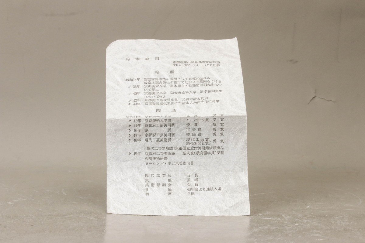稀に他の作品名・作家名が書き付けられた木箱をお付けしております。誤認防止のため書き付け部分の画像は掲載いたしません。ご了承下さい。