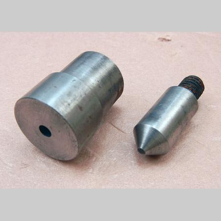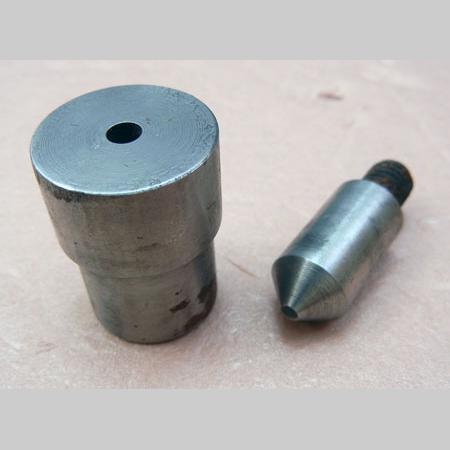 穴あけ駒は、押切りの原理を応用しておりますので、ハンドプレスのハンドルを力強く駒を叩くような感じでお使いください。 |