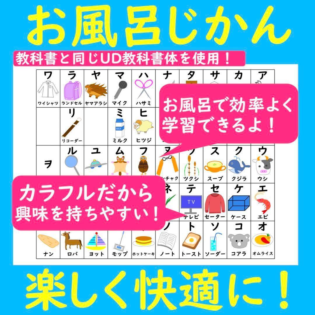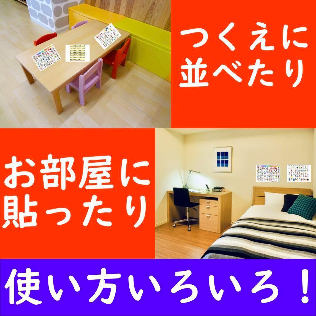 ②内容は「ひらがなあいうえお表」と「カタカナアイウエオ表」が1枚ずつ入ったセット品です。