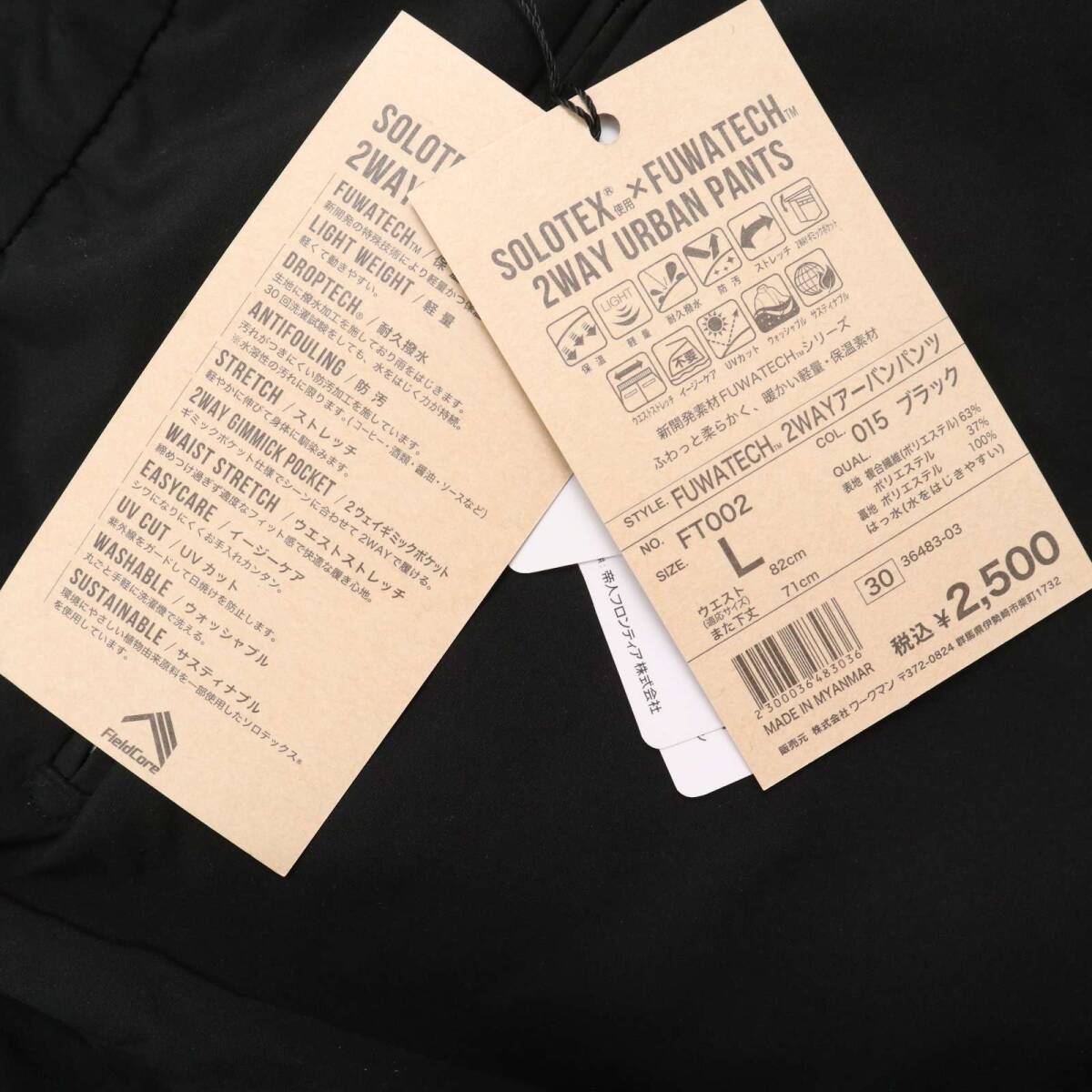 FieldCore フィールドコア ワークマン 秋冬 SOLOTEX × FUWATECH★ 2WAY アーバン パンツ Sz.L メンズ 黒 作業服