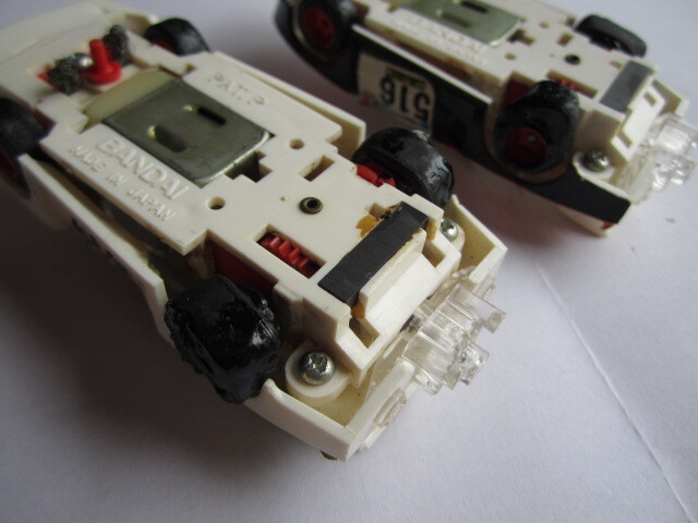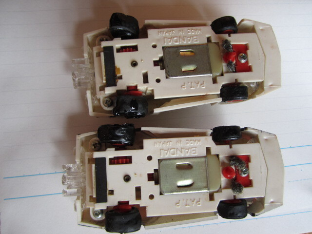 ◆【難あり】レーシングカー2台ありますが、後輪が溶けて変形しています(一部まだベタつきあり。)。