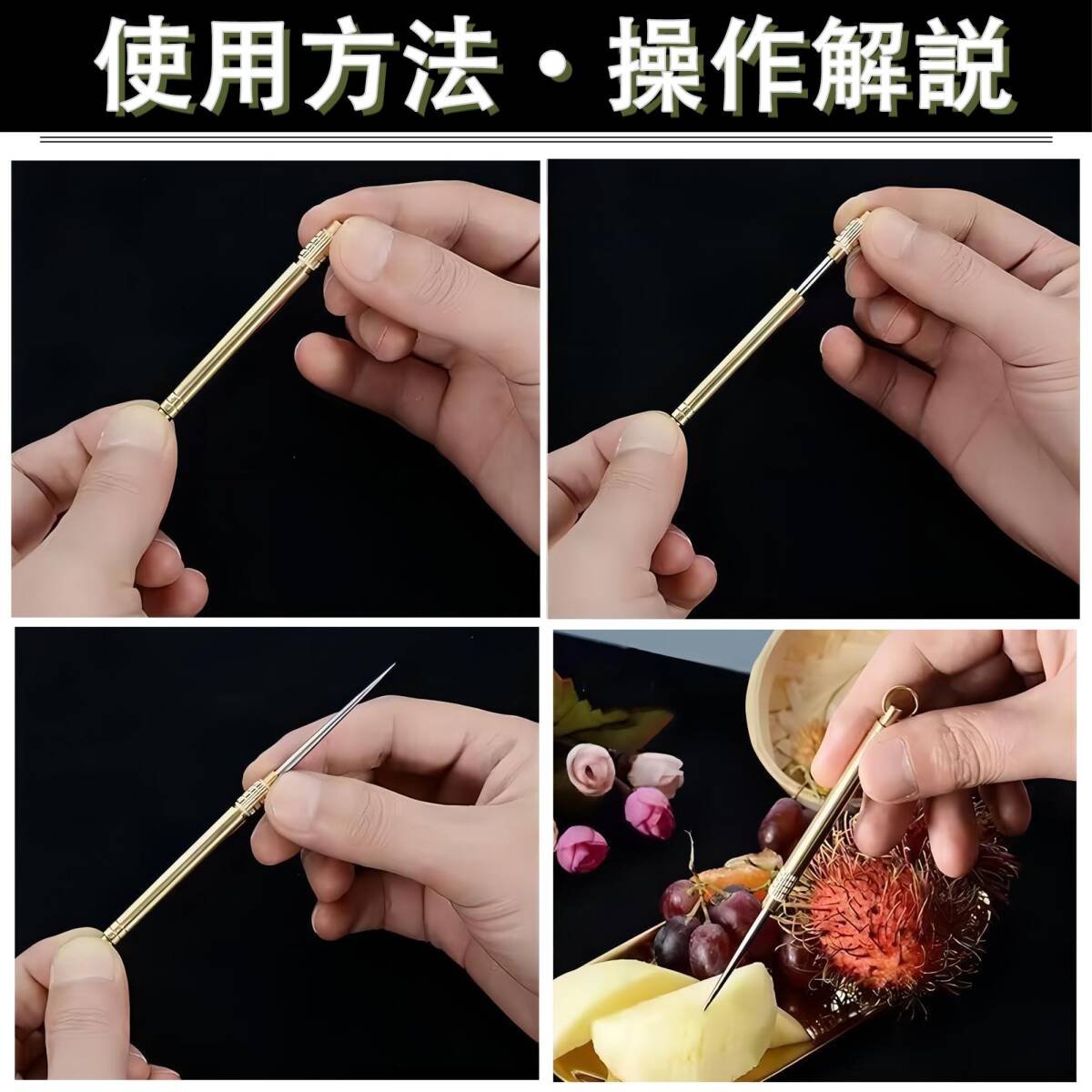 【実用ツール】歯楊枝やフルーツピックとしてだけでなく、SIMカードピン、宅配ボックス開封ツールとしても活用でき、キャンプ、アウトドア冒険、ビジネスミーティング、外食など様々なシーンで幅広く利用可能。また、スタイリッシュなデザインも加わり、生活必需品となる携帯小物となっています。
