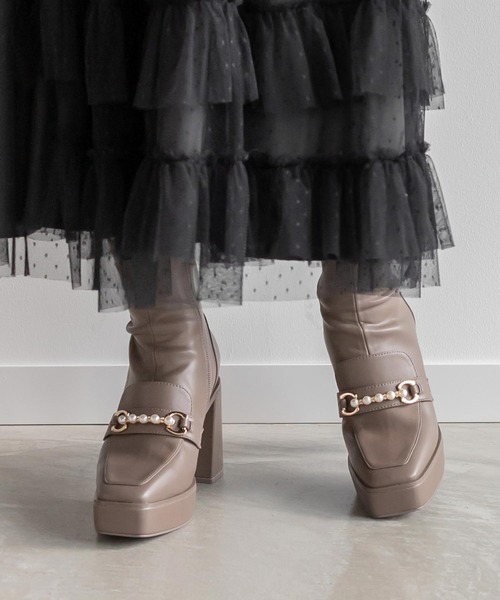 キーワード:ブーツ レディース ショート チャンキーヒール ハイヒール 秋 冬