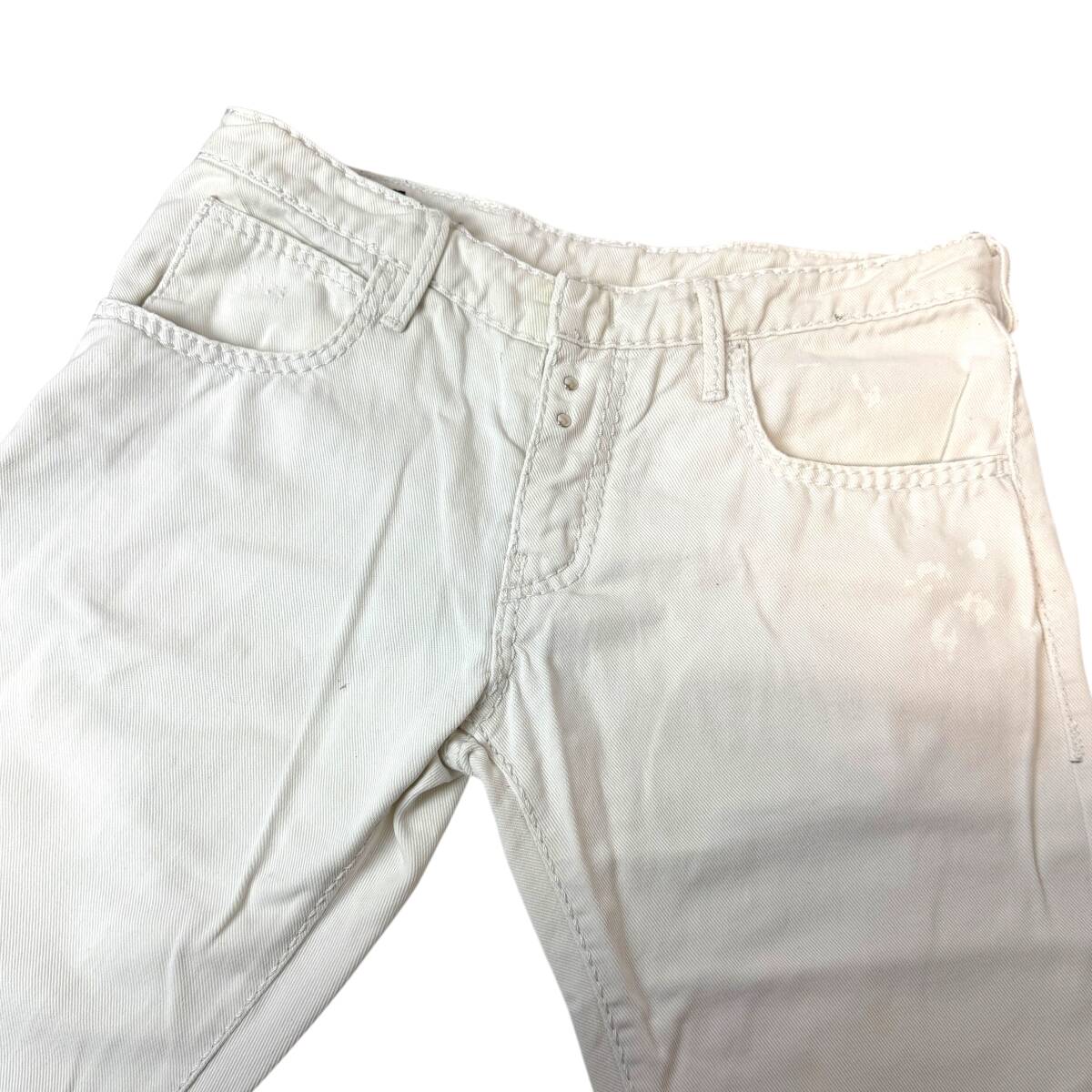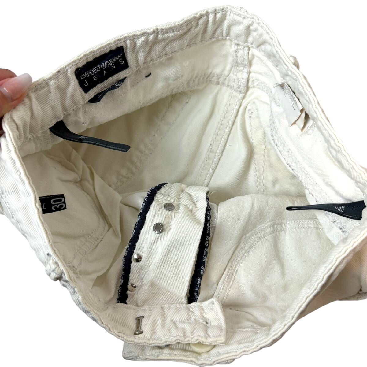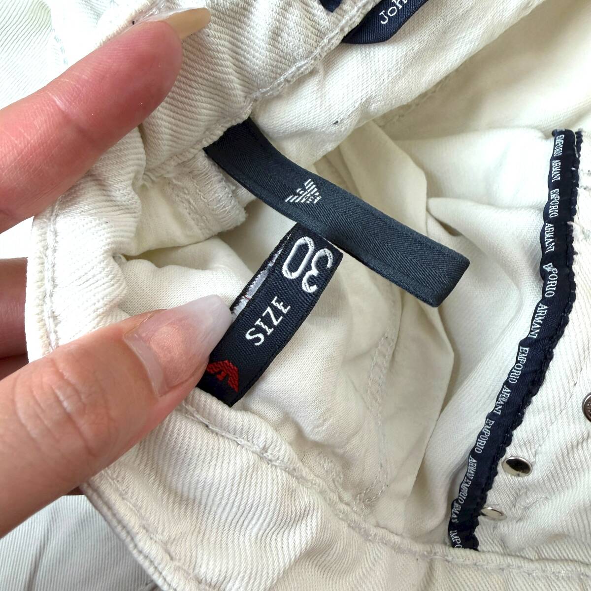 美品 EMPORIO ARMANI 3111 デニム ロゴ金具 ペイント ダメージ加工 EA エンポリオアルマーニ パンツ 30 ホワイト