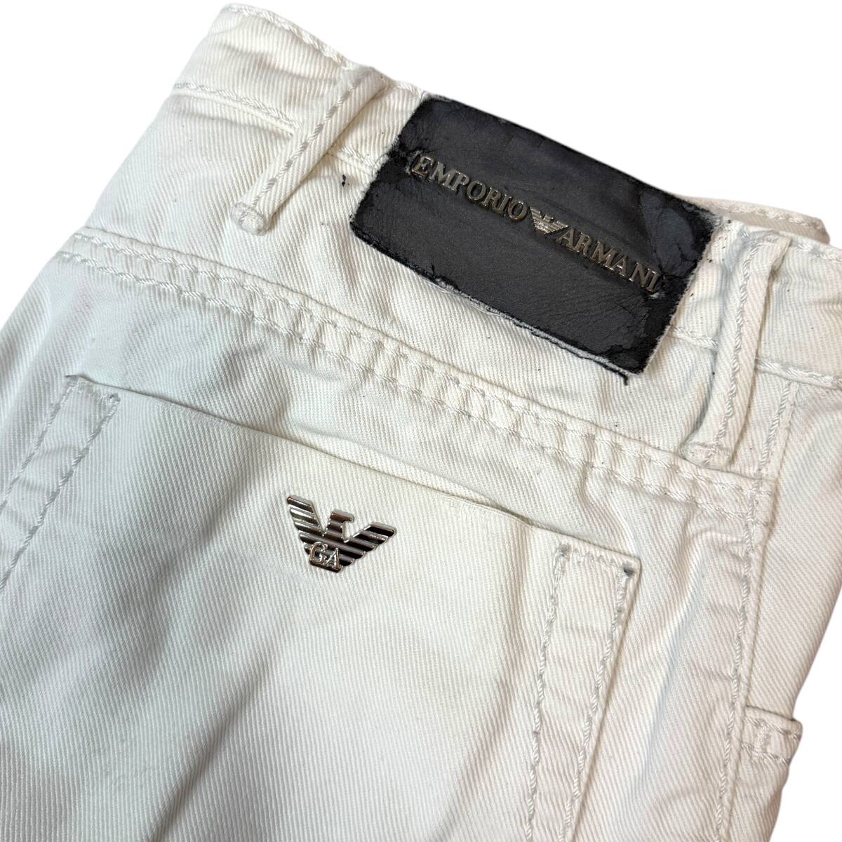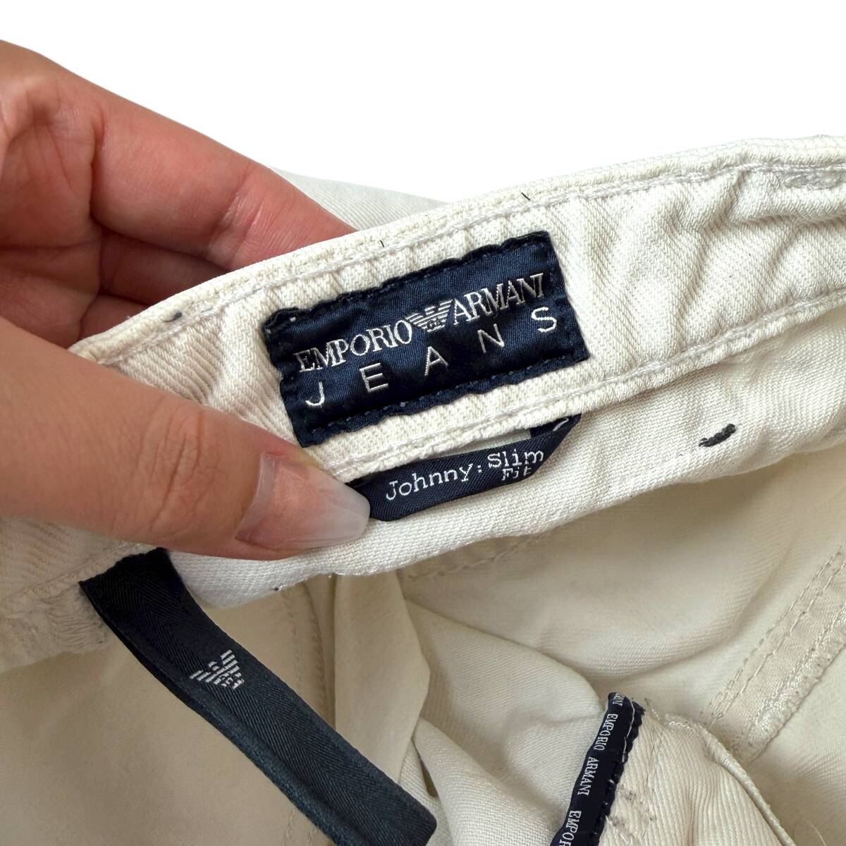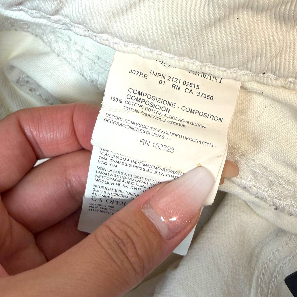 美品 EMPORIO ARMANI 3111 デニム ロゴ金具 ペイント ダメージ加工 EA エンポリオアルマーニ パンツ 30 ホワイト