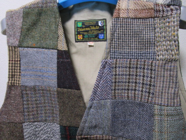 レア!アイルランド製 Hanna Hats パッチワークベスト・42(ハンナハット高級ドネガルツイードベストジレMADE IN IRELAND)