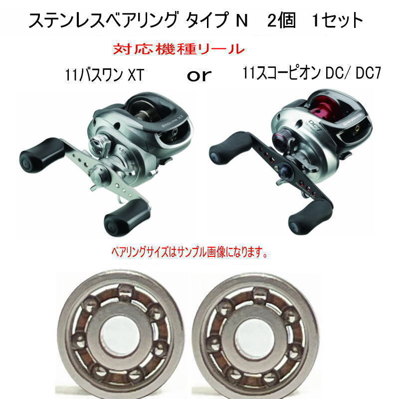 シマノ 11バスワン XT or 11スコーピオン DC DC7 (対応機種) ステンレスベアリング N 10-3-4mm 2個 1セット