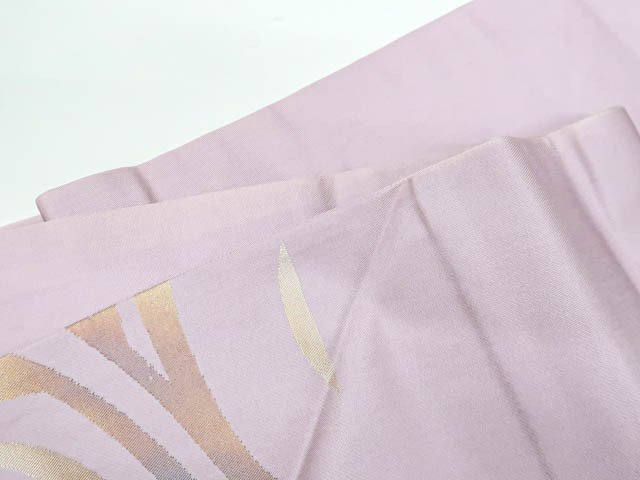 リサイクル商品のため、箔ほしや耳にヤケがございますが、ご使用可能なお品でございます。 地色は薄紫です。 1枚目の画像が近いお色かと思われます。 素材は正絹です。 |