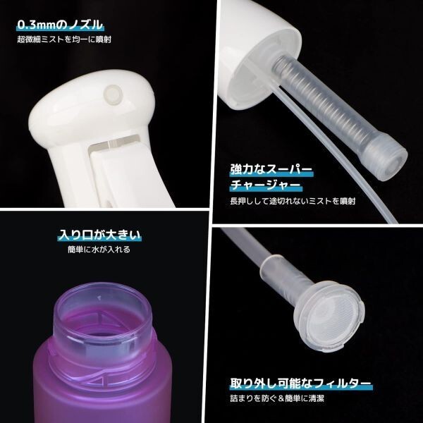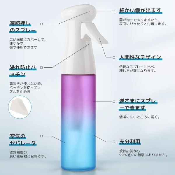 霧吹き 超微粒0.3mm 300ml スプレーボトル アルコール対応 パープル&ブルー 1円スタート 8800000036458