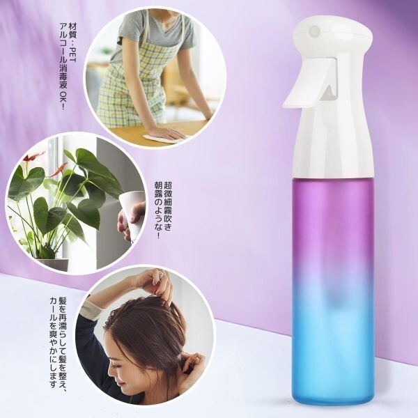 霧吹き 超微粒 0.3mm 300ml スプレーボトル アルコール対応 観葉植物 美髪用 パープル&ブルー