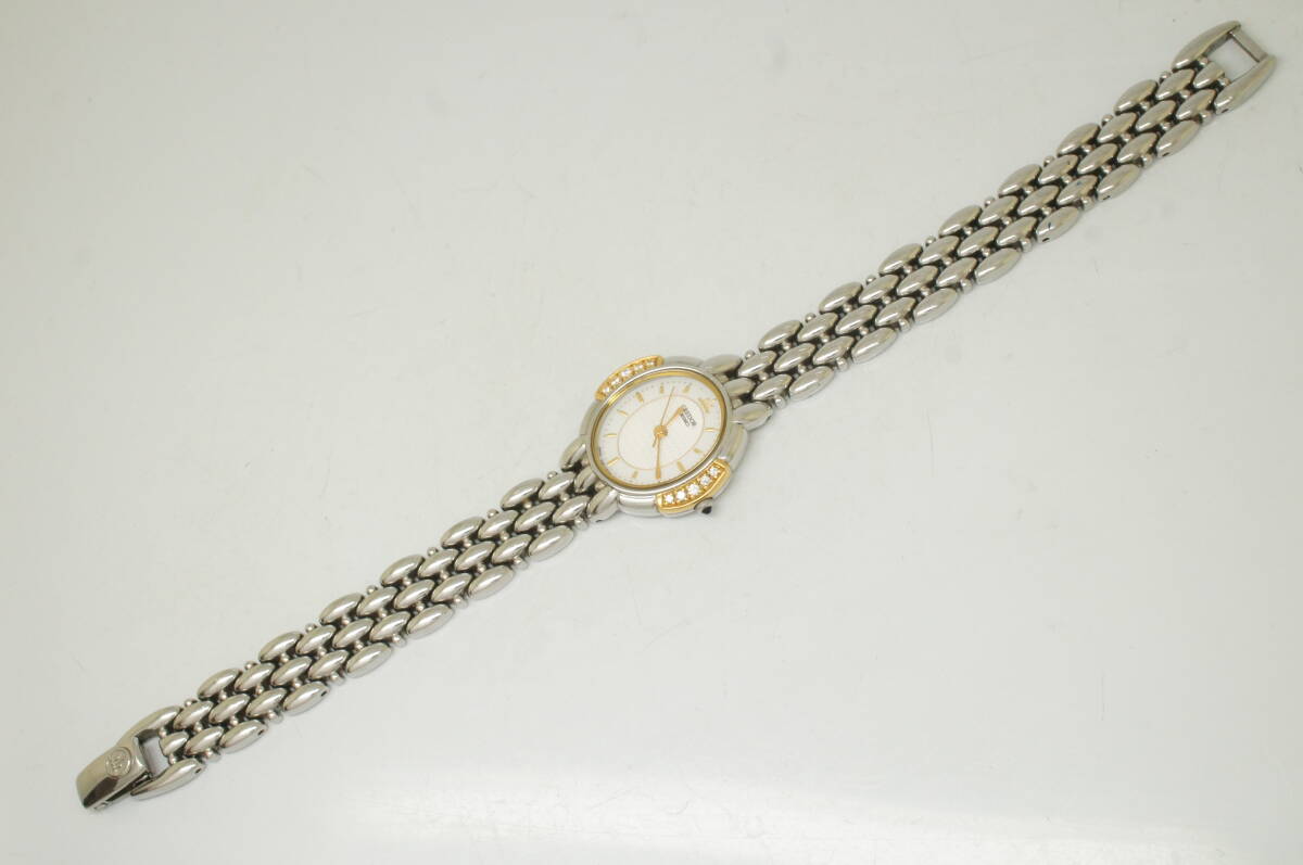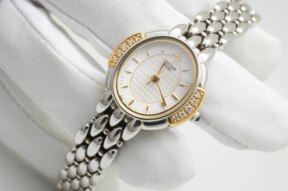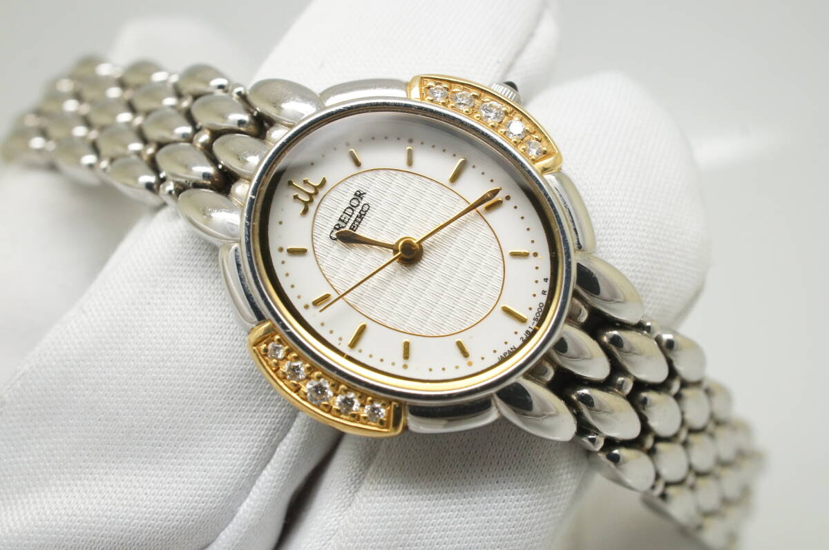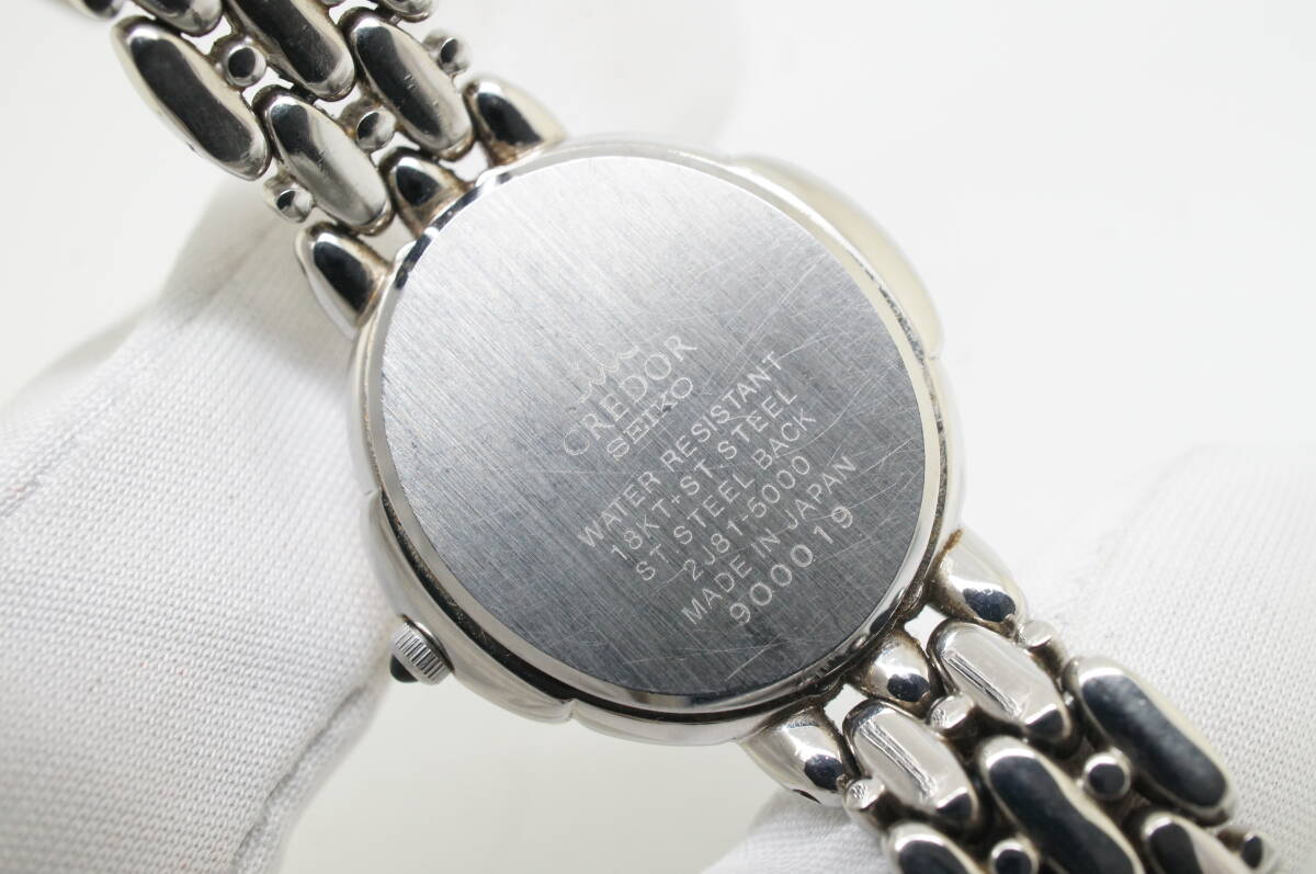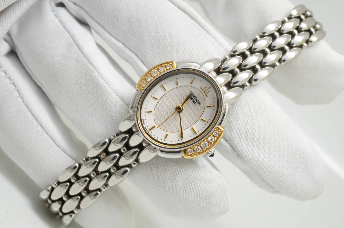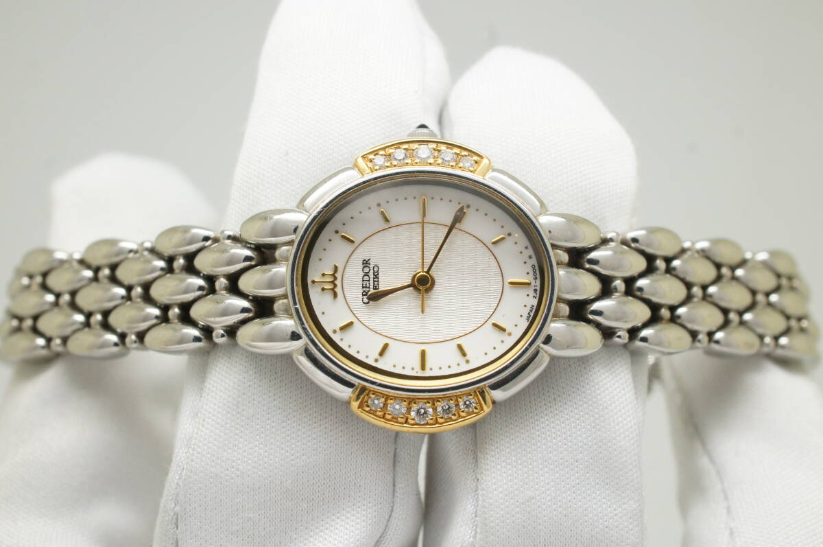 Z119●作動良好 美品 SEIKO セイコー CREDOR クレドール 18KT×10Pダイヤベゼル 2J81-5000 レディース腕時計 コンビ お洒落 クォーツ
