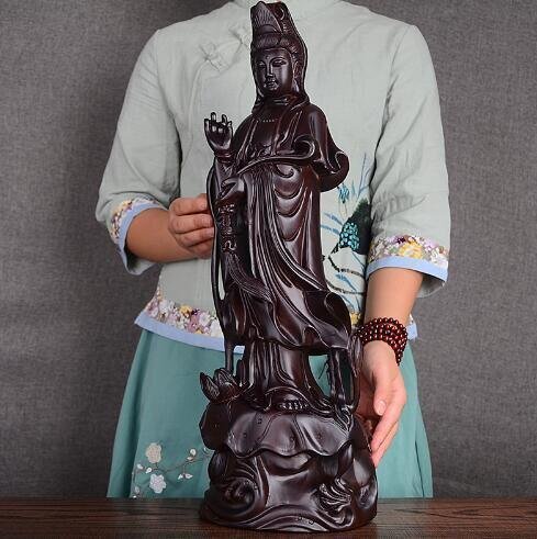 美品★仏教美術 精密細工 木彫り 黒檀木 観音菩薩立像 仏像 置物 高さ49cm