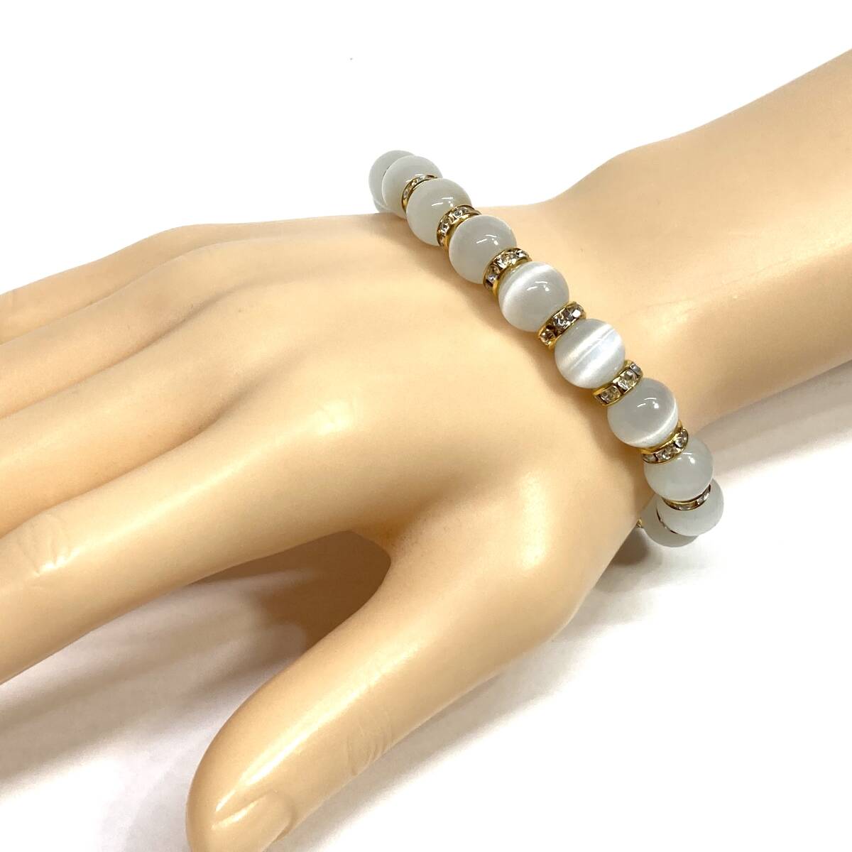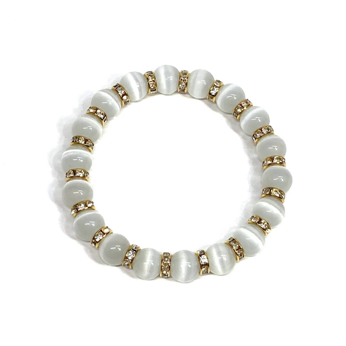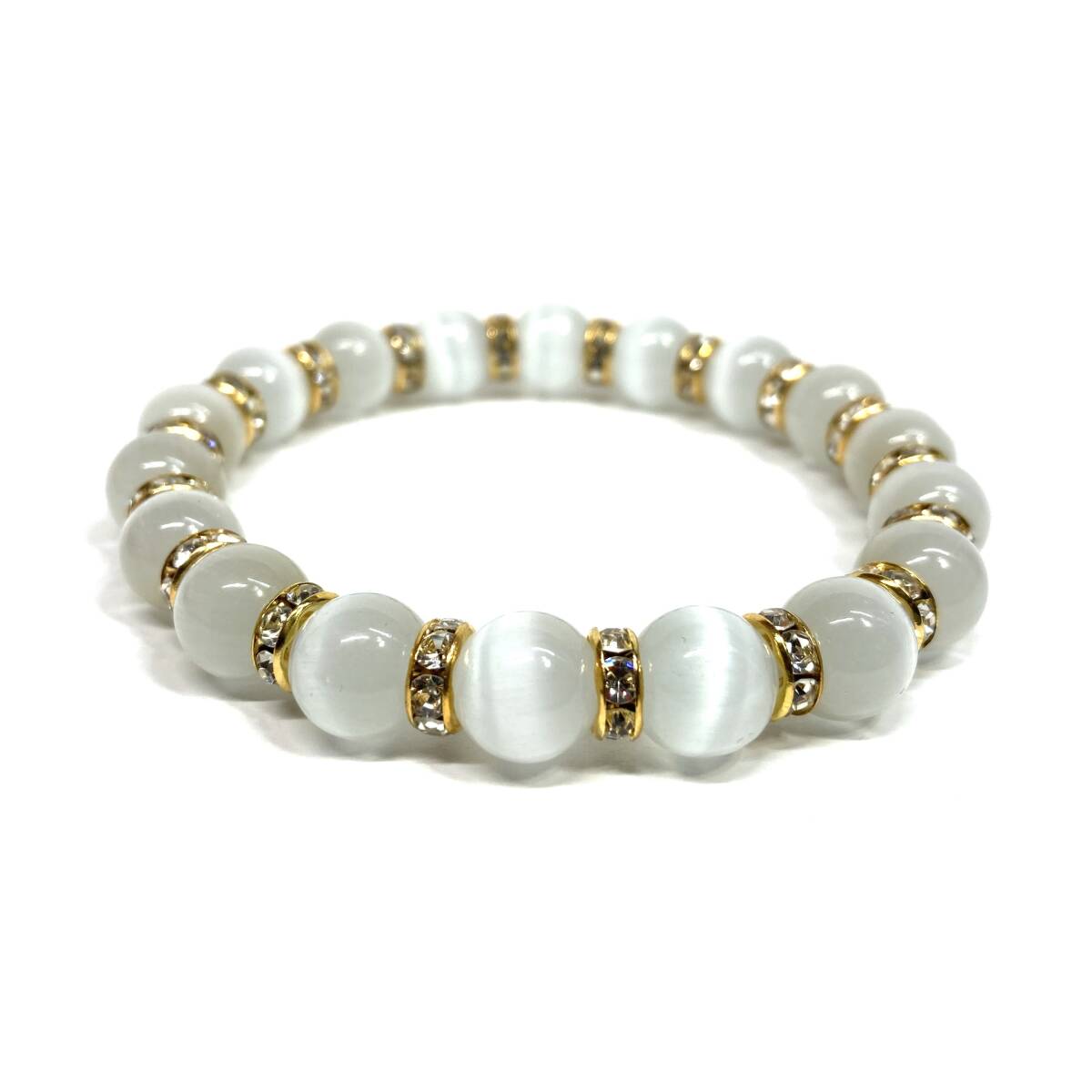 キャッツアイ(ホワイト) パワーストーン ブレスレット 10mm (ゴールド) 数珠ブレス メンズ・レディース 男性 女性 幸運 開運 浄化