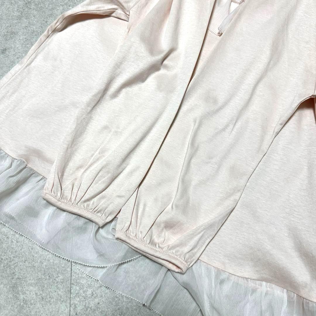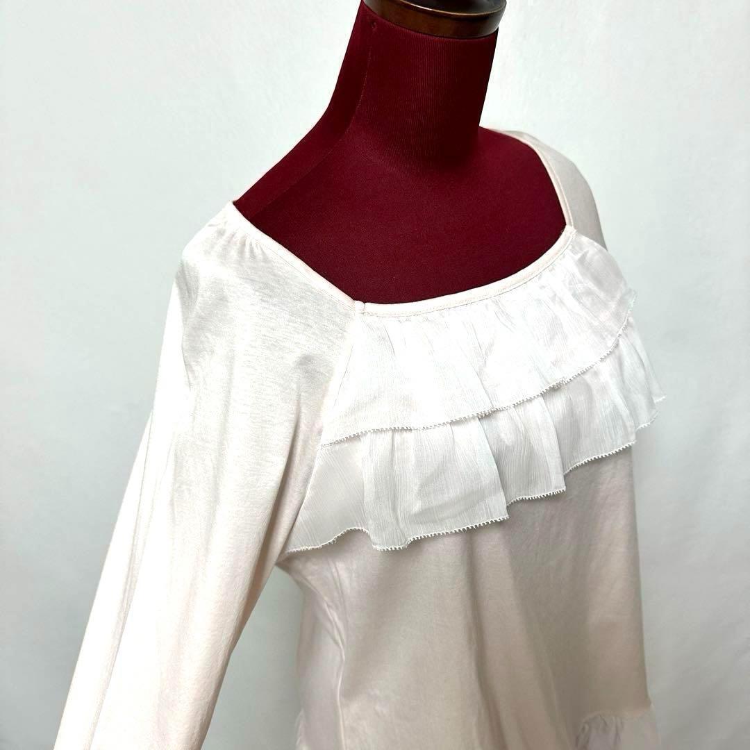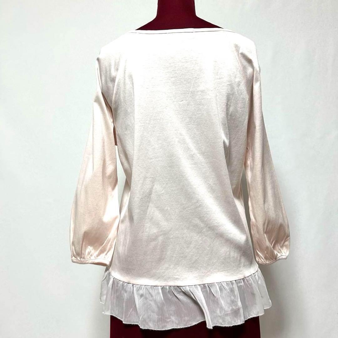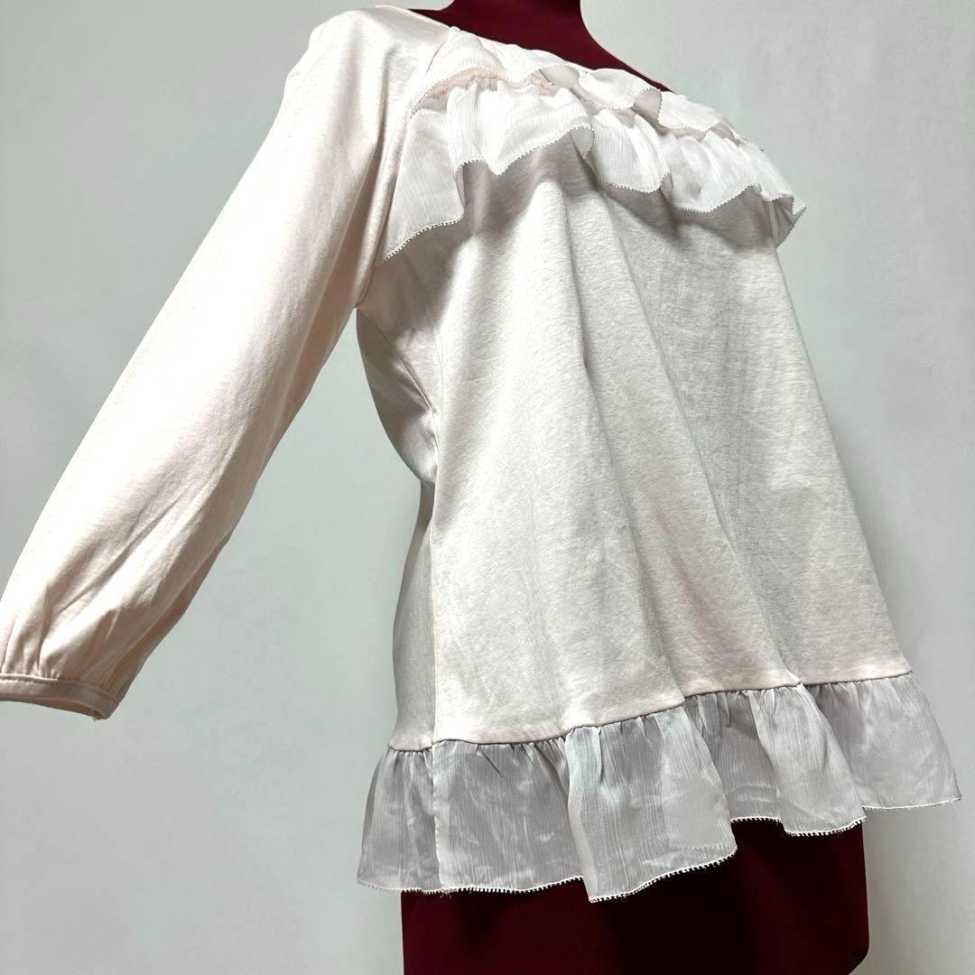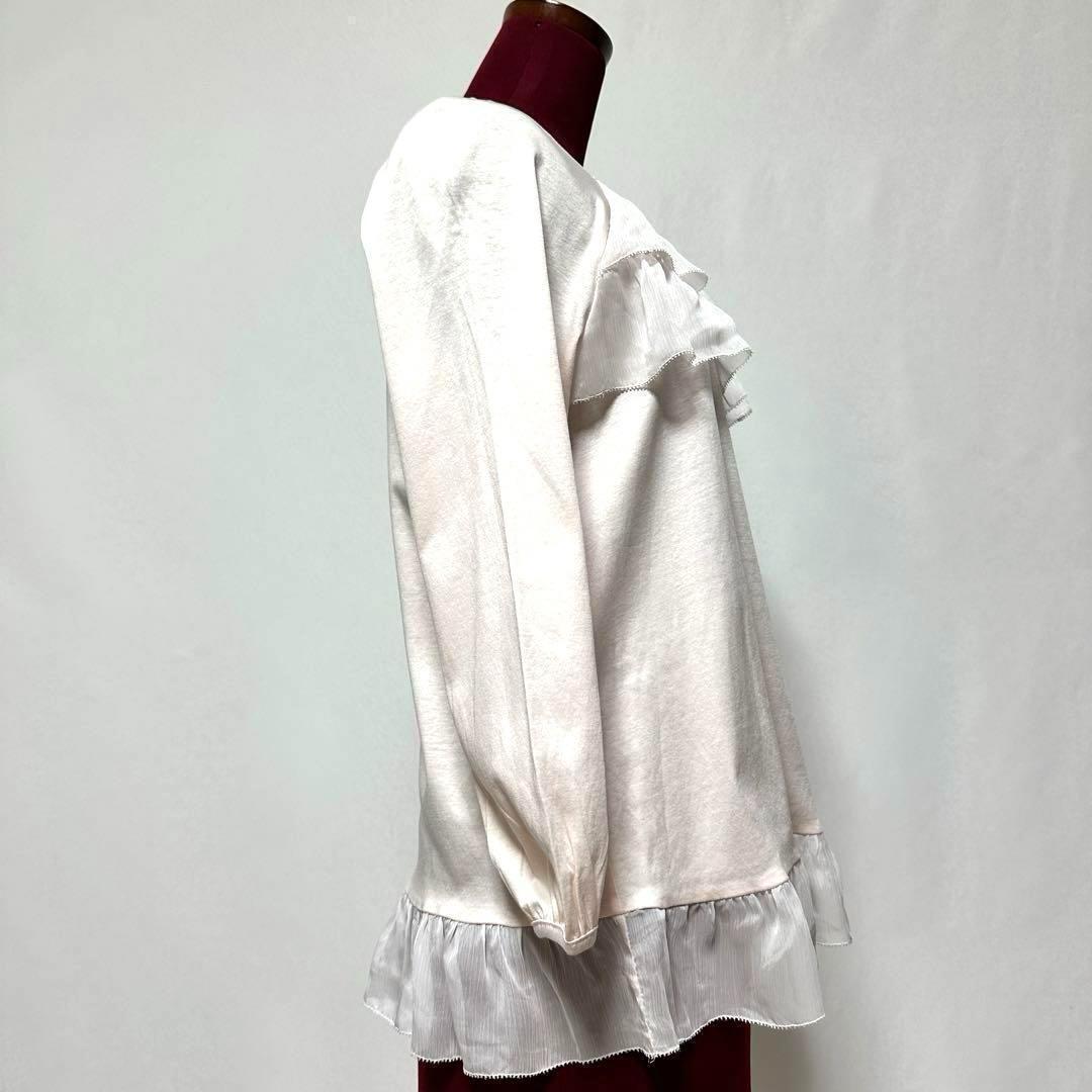 カットソー 7分袖 薄手 フリル 大人可愛い 光沢 サラサラ 涼しい スタイルカバー