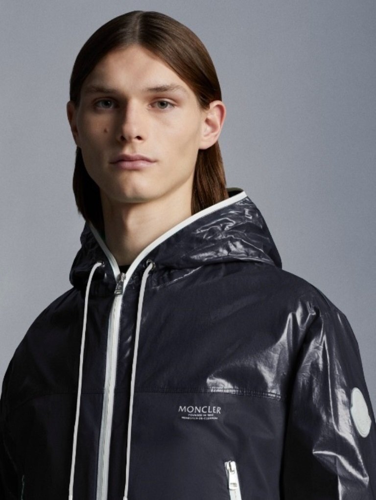 18万新品本物◆MONCLERモンクレールジャパン◆4◆ラバーロゴ 薄手ジップアップ撥水コーティングブルゾン『VAUGIRARD』紺ネイビー