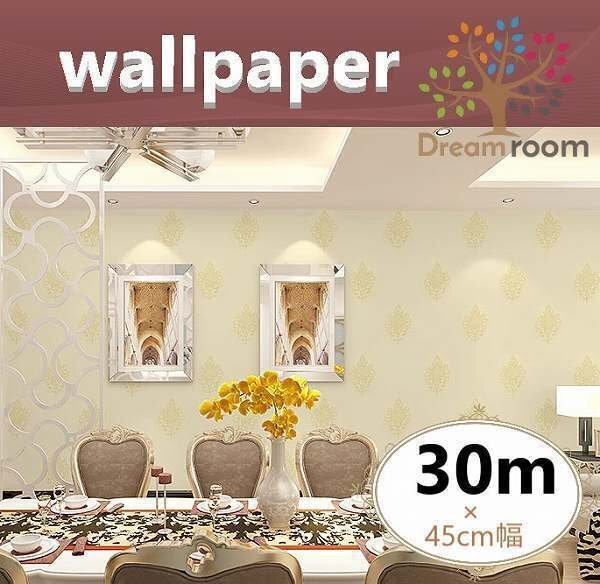 【 30m 】 ダマスク柄 白×ゴールド 壁紙 アンティーク ウォールペーパー北欧風 インテリア リビング はがせる シール DIY 糊付き