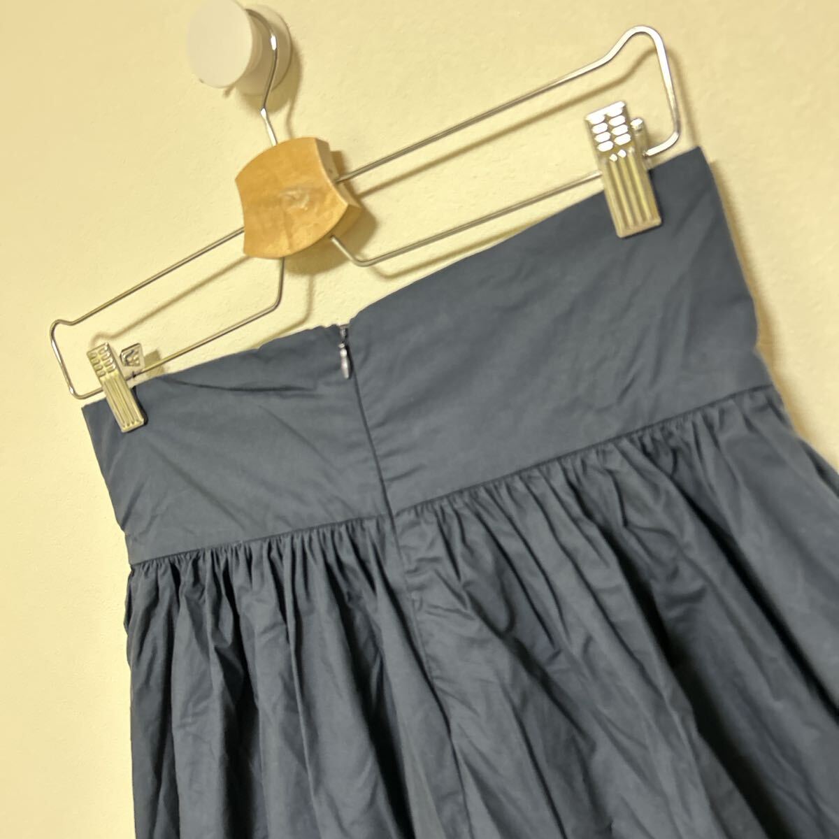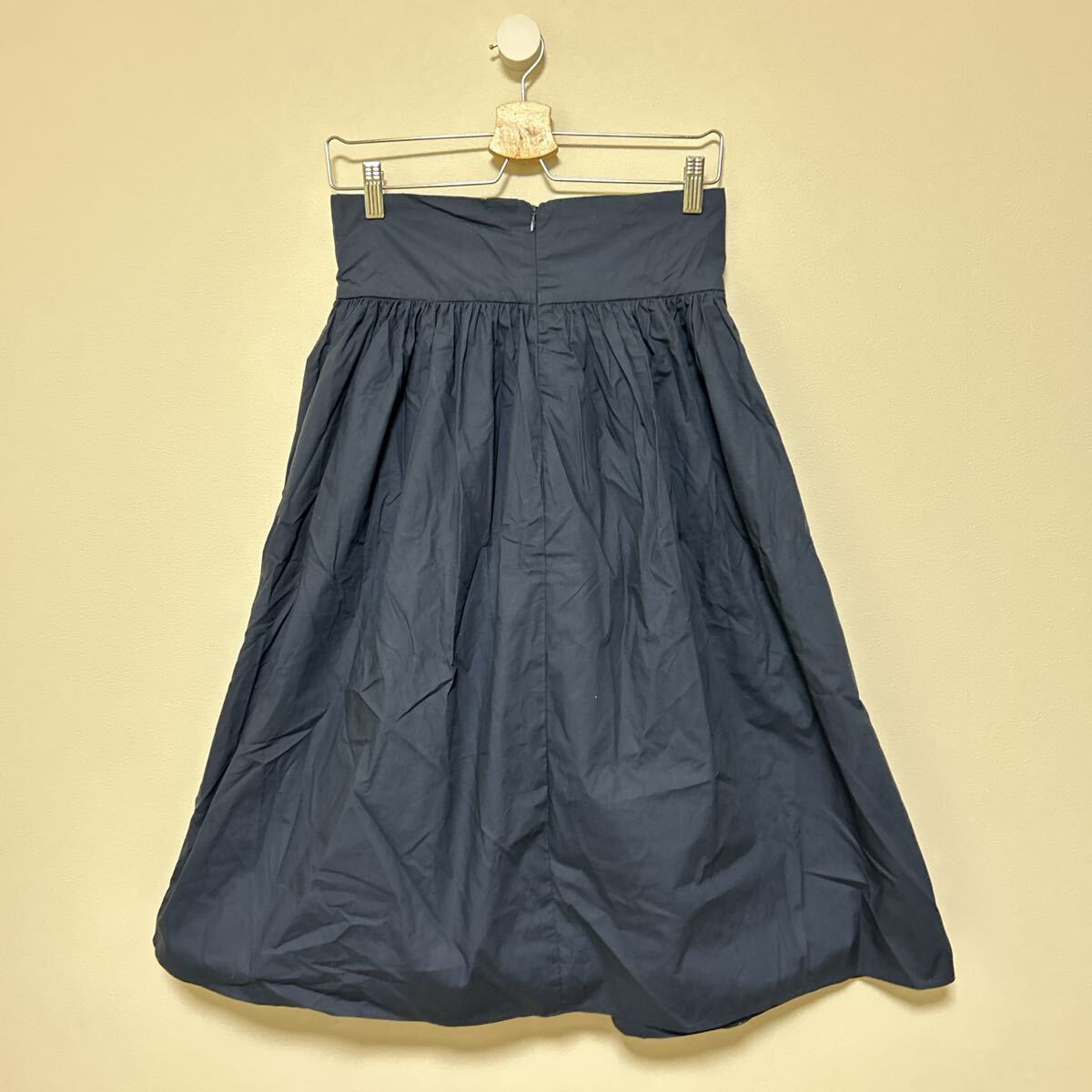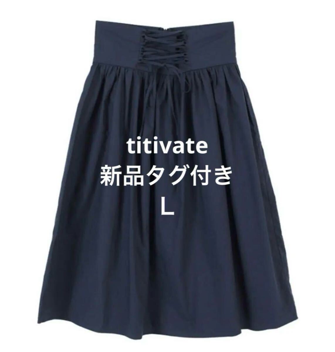 ネイビーのフレアスカート、レースアップウエストデザインがポイント。おしゃれで品のあるスタイル