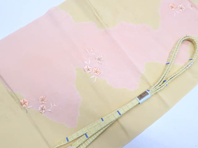 《京都一輝堂》【着物】和装小物 帯締め帯揚げセット 平組 刺繍 花文 帯締 帯揚 25w04-5370