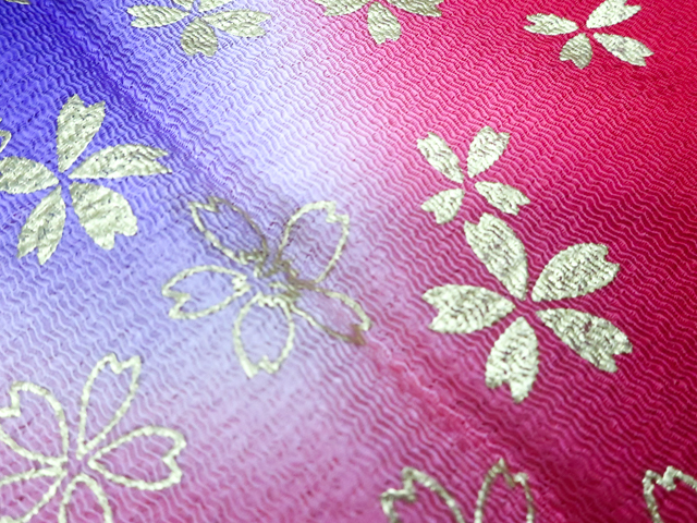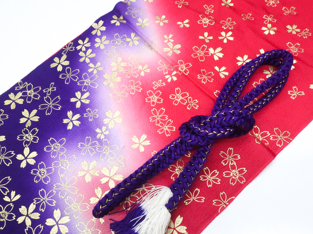 色 :帯揚げは濃いピンク、紫・帯締めは紫