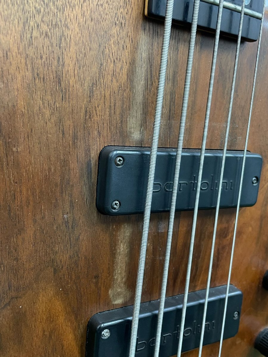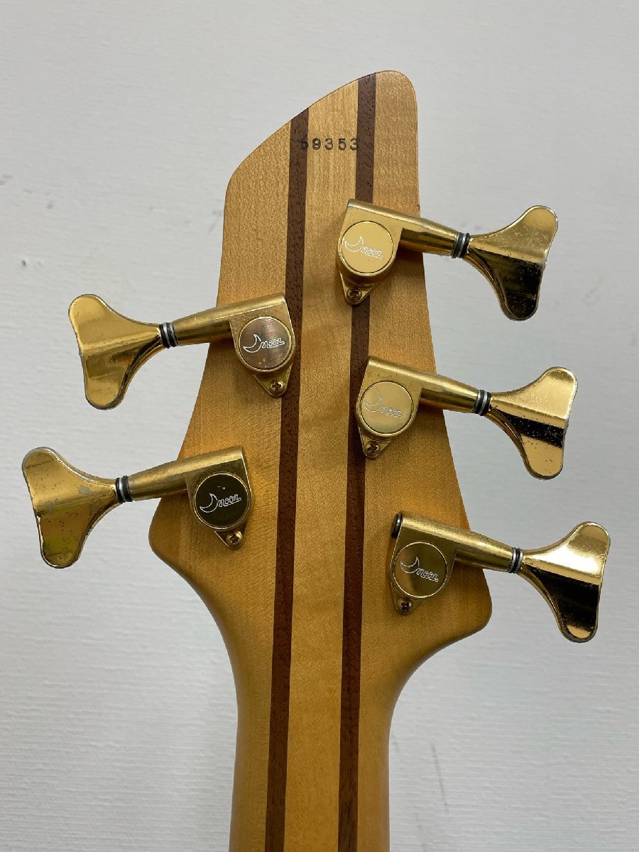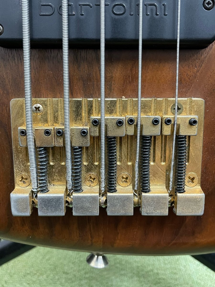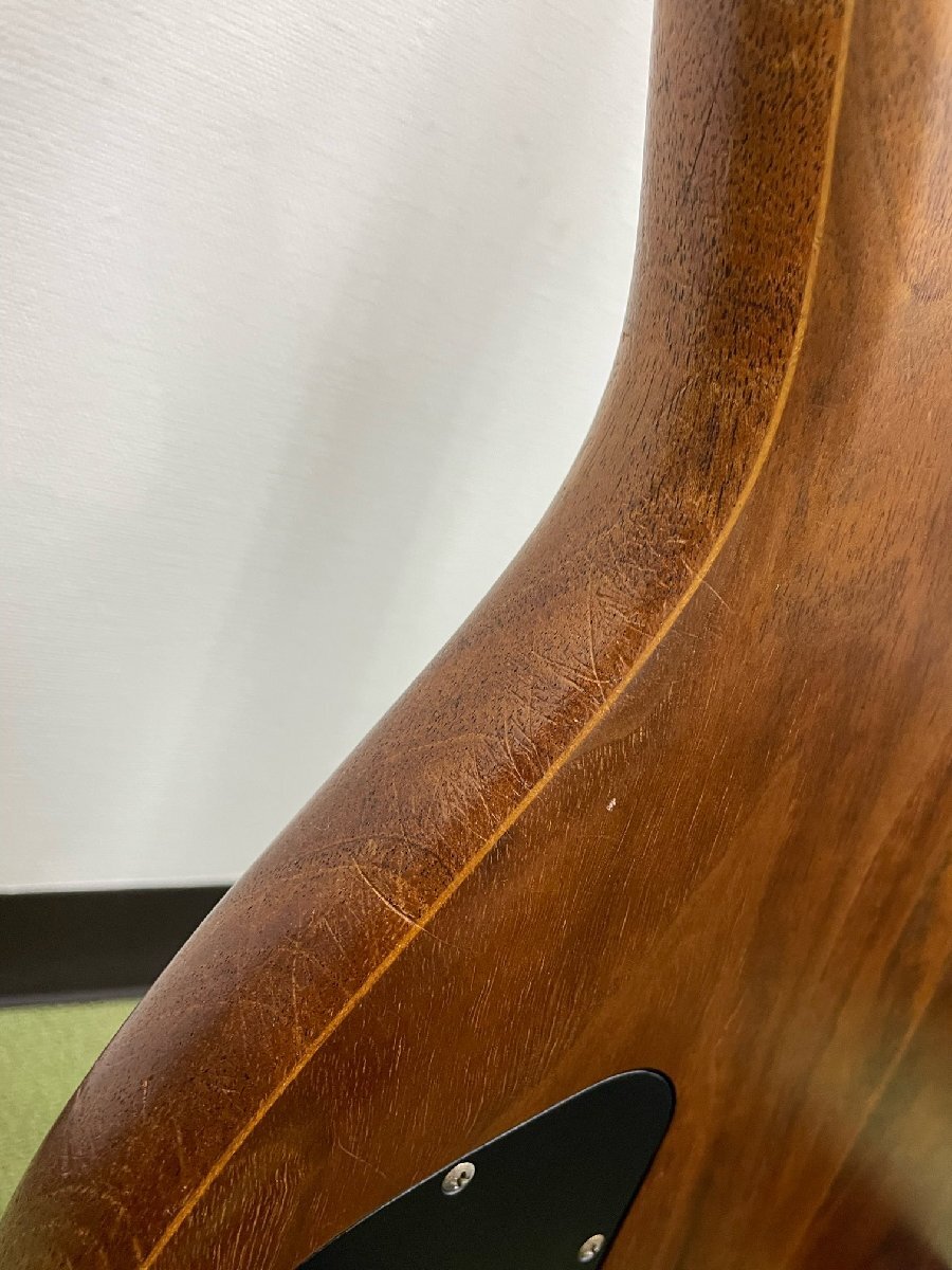 【状態】 ・シリアルナンバー : #59353 1989年製 ・弦高 5弦側:2.5mm / 1弦側:2.0mm ・ネック反り : やや順反り ・トラスロッドの残り : どちらの方向にも余裕あり ・フレットの残り : 9割ほど ・電気系統:目立った劣化やガリなどは見られません ・その他キズなど : 年代相応のキズや打痕、ゴールドパーツくすみ等のあるプレイヤーズコンディション。ペグワッシャー割れあり。専任スタッフによる調整済み ・付属品 : ソフトケース 【Spec】 Body:Walnut/Maple/Mahogany/Maple/Walnut Neck:Maple Finger Board:Ebony Pickups:Bartolini MBC-5 Preamp:Bartolini TBT Control : 2Volume / 1 Tone(パッシブのみ/Push-PullでActive/Passive切替) 2 Band EQ(Treble/Bass) Finish : Oil Finish | |