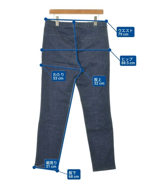 | ウエスト:79cm,裾周り:31cm,ヒップ:88.5cm,わたり:53cm,股上:32cm,股下:68cm |