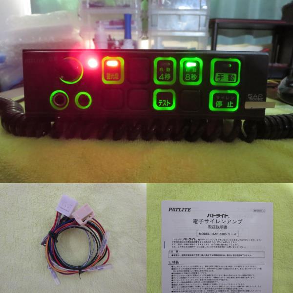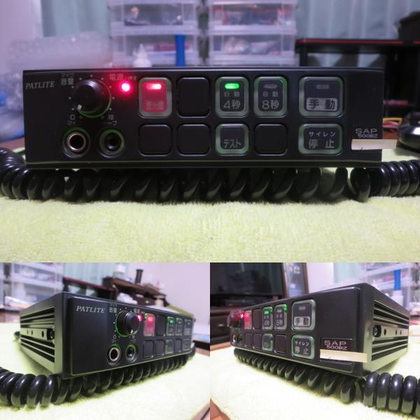 ★ 美品 パトライト製 拡声器 電子サイレンアンプ SAP-500 BZ  純正マイク ホルダー カプラ配線付 ★