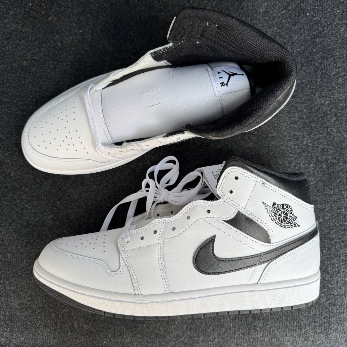30.0cm 新品未使用 NIKE AIR JORDAN 1 MID ナイキ エア ジョーダン スニーカー シューズ AJ1 人気 定番 白 黒 レザー 箱無し 正規品