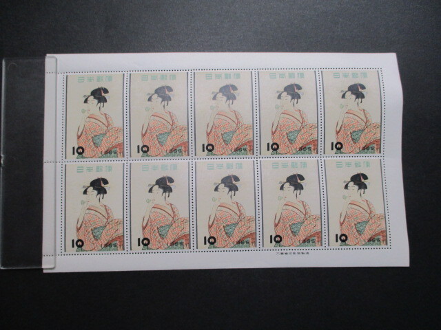 切手趣味週間    ビードロを吹く娘・10円    1シート     普通品