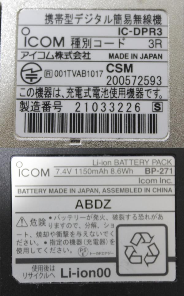 メーカー名 | アイコム | 型番 | IC-DPR3 | 付属品 | 画像参照 | |