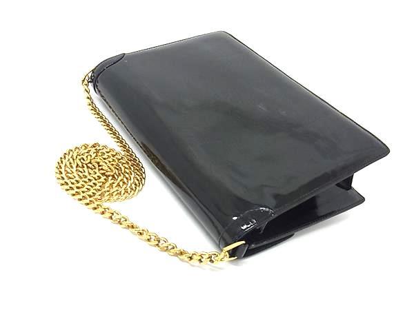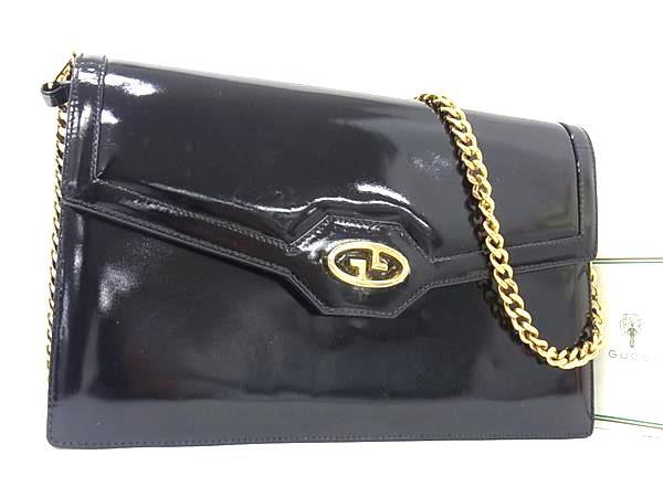 1円 GUCCI オールドグッチ ヴィンテージ パテントレザー チェーン ショルダー トートバッグ 肩掛けかばん レディース ブラック系 BM9454