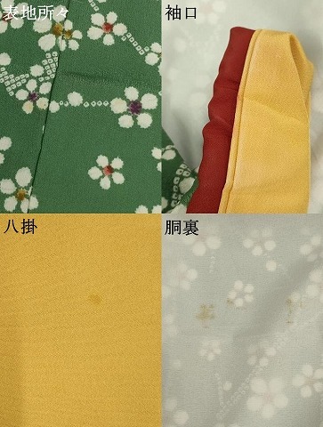 【化繊・ふき綿仕立て・バチ衿・比翼仕立て】 状態は接写画像のように表地・袖口・八掛・胴裏に薄い汚れがございますが その他特に目立ったシミ汚れなどもなく大変良い状態です。 大変上質な逸品になります。 お安く出品致しますので、是非この機会にいかがでしょうか? |