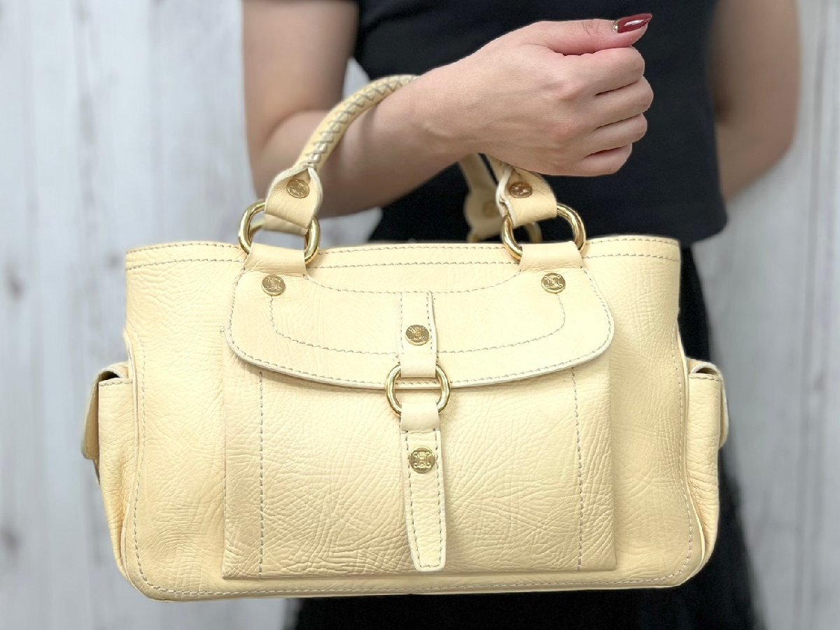 【ブランド】CELINE セリーヌ 【形】ハンドバッグ 開閉なし・外ポケット3・内ポケット3 【素材】レザー 【色】ベージュ系 【A4収納】不可 【サイズ】横約31×縦約19×幅約12×ハンドル約32センチ 【付属品】なし 【状態】 ⑧美品 未使用品ではないのでスレ汚れなどあるかもしれませんが、素敵なバッグになります。 ※できる限り写真に載せておりますのでご参考ください。 ※※※状態の詳細※※※ ⑩新品・未使用 ⑨極美品 ⑧美品 ⑦一般的な使用感でも美品に近い ⑥一般的な使用感 ⑤多少使用感あり ④使用感あり ①~③ジャンク品・リペア必要 | ||