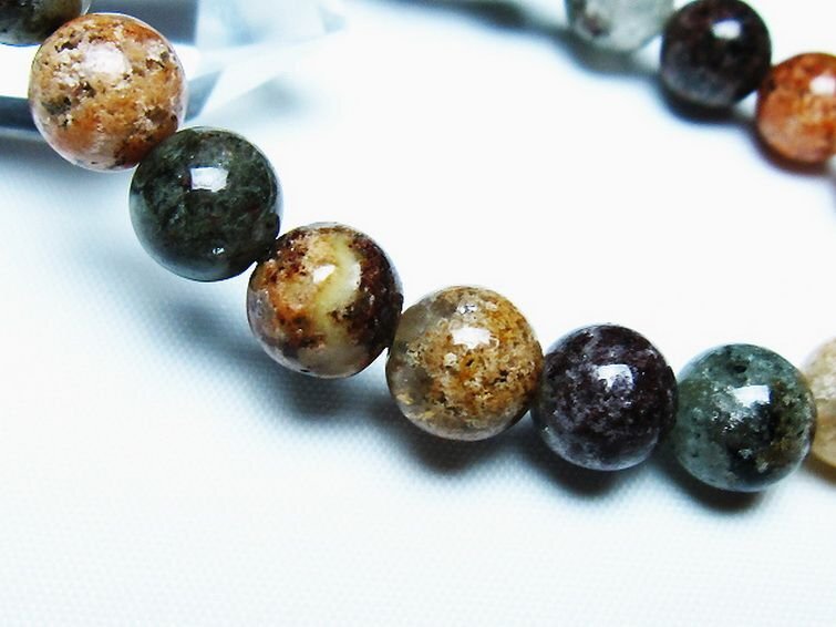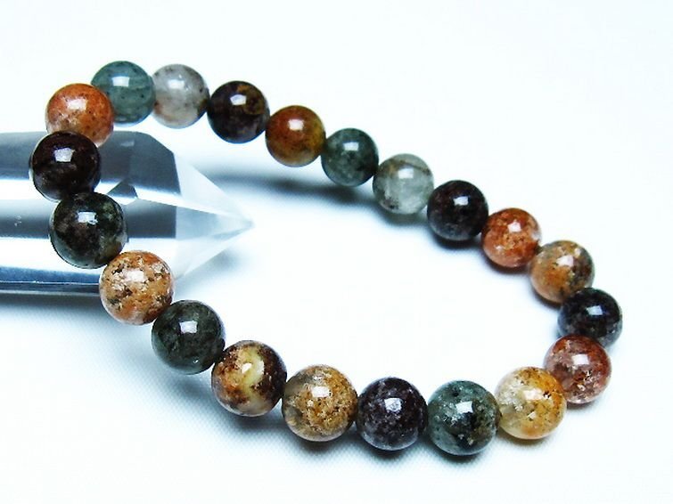 ■商品名: グリーンファントムブレスレット ■商品ID: T493-6203 ■商品重量:約 21.7g ■商品サイズ:内周約:156mm(±5mm)粒直径約:9mm(±0.5mm) ●ファントムとは、「影」「幽霊」という意味。 水晶の結晶が生成していく過程でいったん成長が止まり、その後再び成長を開始すると、その境目に気泡や他の物質が取り込まれ、まるで山の影を思わせる模様ができます。時にはそうした山の影が幾層にも連なっる場合があります。こうしてできた石を、ファントム水晶と呼びます。和名では、「幻影水晶」「幽霊水晶」と称される場合もあります。 ファントム水晶は、山や谷といった困難にめげずに進む「克服」の暗示や、物事を隆起させる暗示を放つとされます。そのため、商売や事業運を興隆させたい人に非常に人気があり、また成長期の子供にお守りとして持たせたりする場合もあります。 また、新陳代謝を促進して細胞の再生を促したり、電磁波を消散させるチカラ、霊能力やサイキックなパワーについても語られています。 ファントムの色は、白、緑、オレンジ、茶色とさまざまで、特に白や緑はヒーリング力が強いとされます。 また山の姿も、見事なピラミッド型から渦を巻いているような形、雪山、嵐、流星群をを連想させるものまでさまざまで、人のイマジネーションを強く刺激します。 パワーストーンを知れば知るほど、こうした石の魅力にとりつかれる方が多いようで、ガーデン水晶やファントム水晶にひかれるようになったら、もう立派なパワーストーン通と自称できるでしょう。 ●品質:困難の克服、物事の興隆と再生、着実な進歩、成長.育成、ヒーリング、新陳代謝の活発化、肌の再生、霊視力【水晶(石英、クリスタルクォーツ)】 |