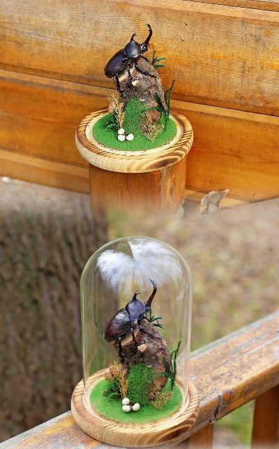 生態カブトムシ標本芸術ガラスカバー昆虫ミクロ景観
