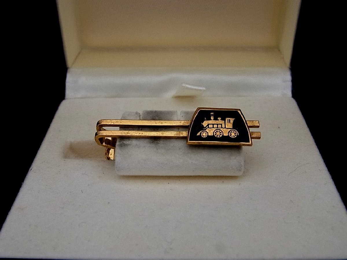 KF0487 状態並品【鉄道開業百周年・機関車】「ゴールド」ネクタイピン タイピン■